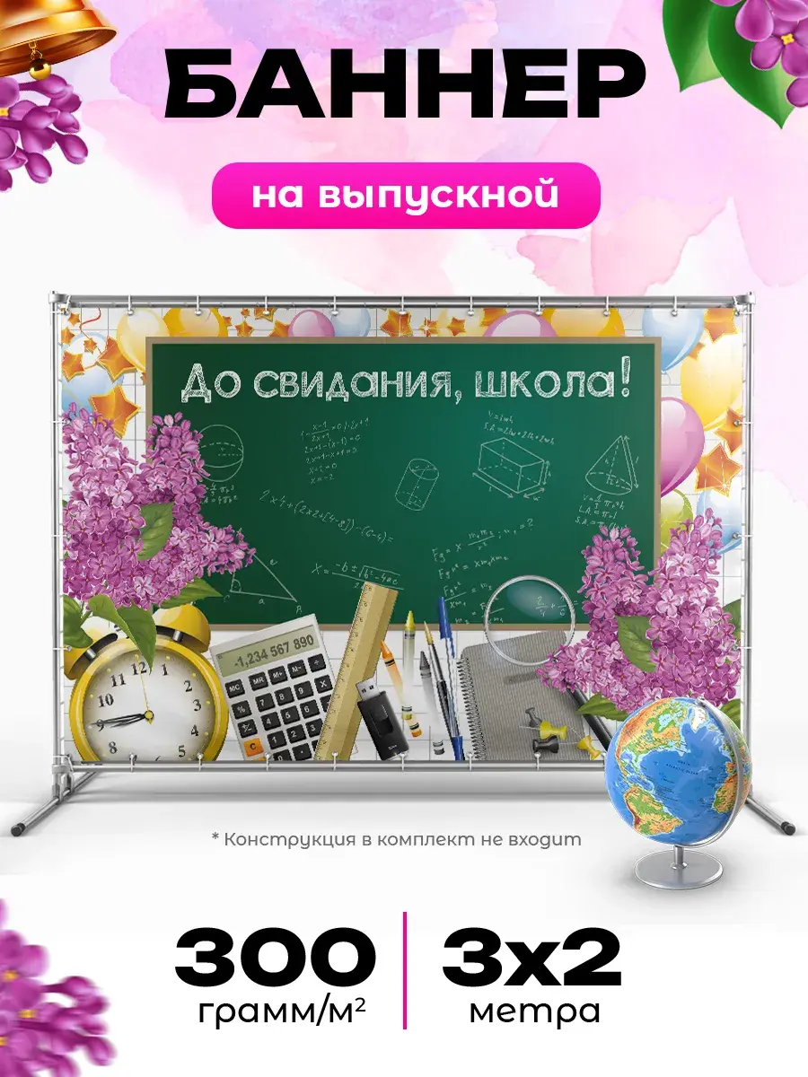 Ищете идеальное решение для оформления фотозоны на выпускной в школе? Представляем вам наш фотобаннер "До свидания, школа!" — стильный и функциональный элемент декора, который добавит ярких красок и эмоций вашему мероприятию. Вы можете украсить баннер дополнительным декором: дождиком, красочным набором шаров.