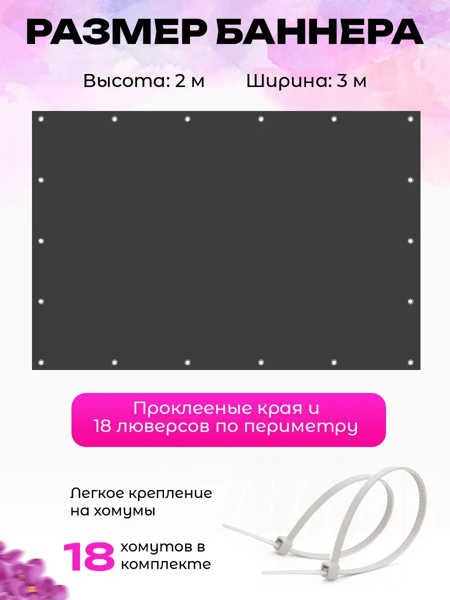- комплектация: баннер с люверсами, встроенными по периметру баннера и хомуты для легкого крепления