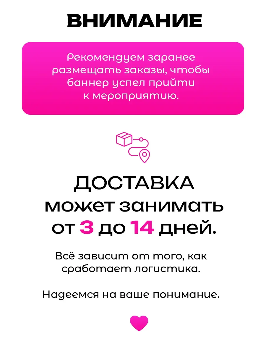 Закажите фотобаннер заранее, учитывайте, пожалуйста, сроки доставки маркеплейса, чтобы он успел разгладится - на это нужно примерно сутки. Можно ускорить процесс с помощью фена. Порадуйте себя и своих гостей стильным и качественным декором!