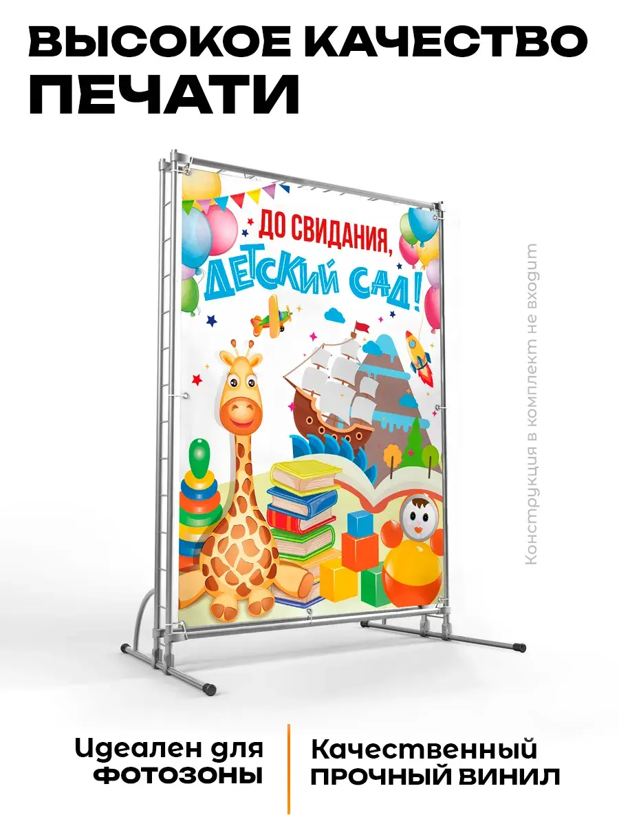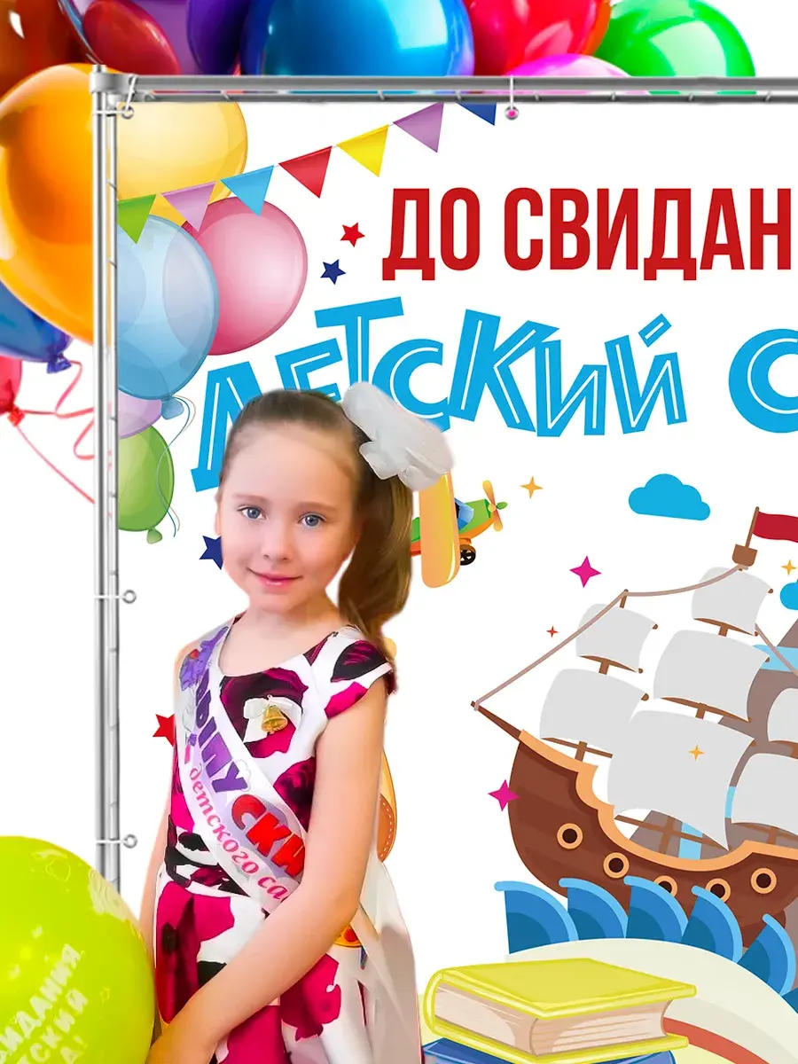 Ищете идеальное решение для оформления фотозоны на выпускной в детском саду? Представляем вам наш фотобаннер "До свидания, детский сад!" — стильный и функциональный элемент декора, который добавит ярких красок и эмоций вашему мероприятию. Вы можете украсить баннер дополнительным декором: дождиком, красочным набором шаров.