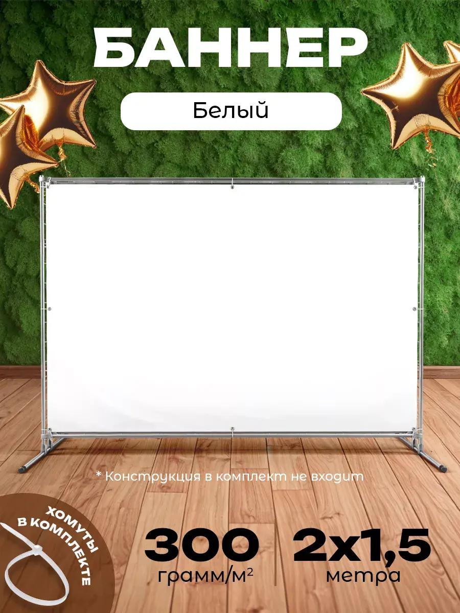 - комплектация: баннер с люверсами, встроенными по периметру баннера и хомуты для легкого крепления