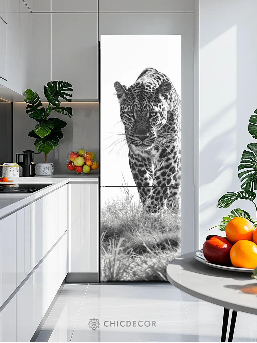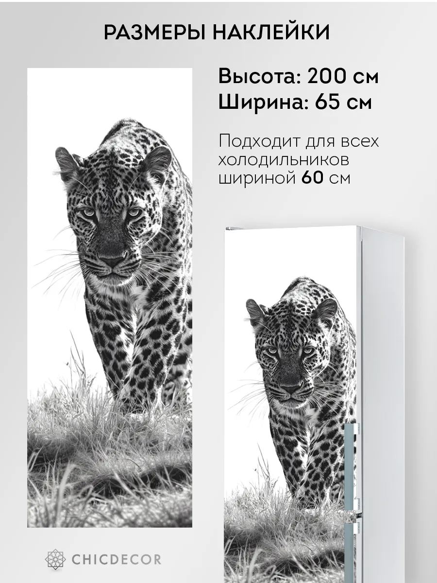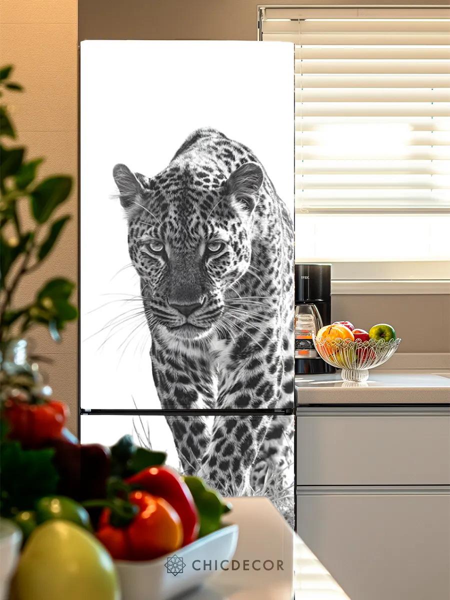 Большая наклейка на холодильник леопард от CHIC DECOR - это прекрасный способ добавить яркий акцент в интерьер вашей кухни. Большая наклейка с изображением леопарда на белом фоне станет настоящим украшением вашего холодильника, преобразив его в стильный элемент декора, добавив яркий дерзкий акцент в декор вашего дома. Изготовленная из высококачественного плотного винила, наклейка проста в нанесении и удалении, не оставляя следов на поверхности.