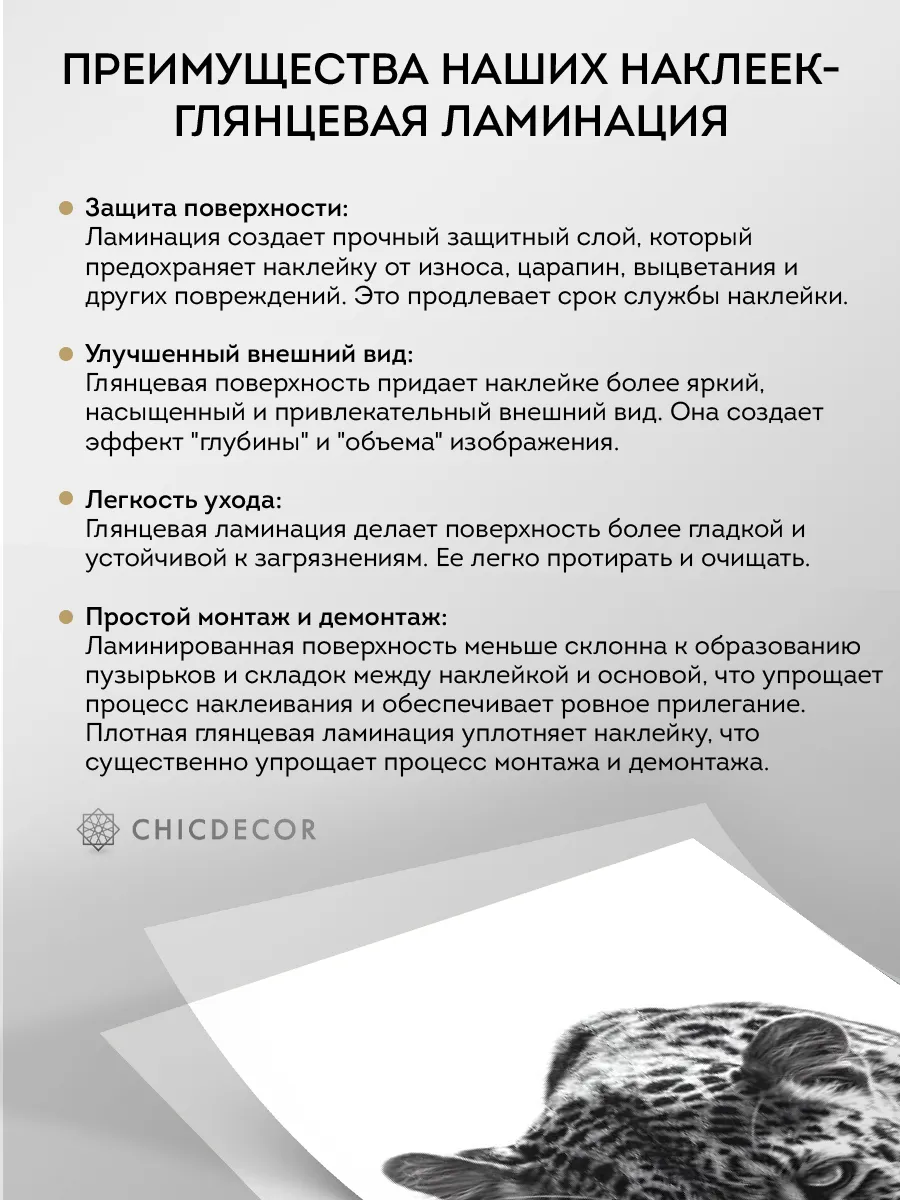 Преимущества наклеек CHIC DECOR - ГЛЯНЦЕВАЯ ЛАМИНАЦИЯ