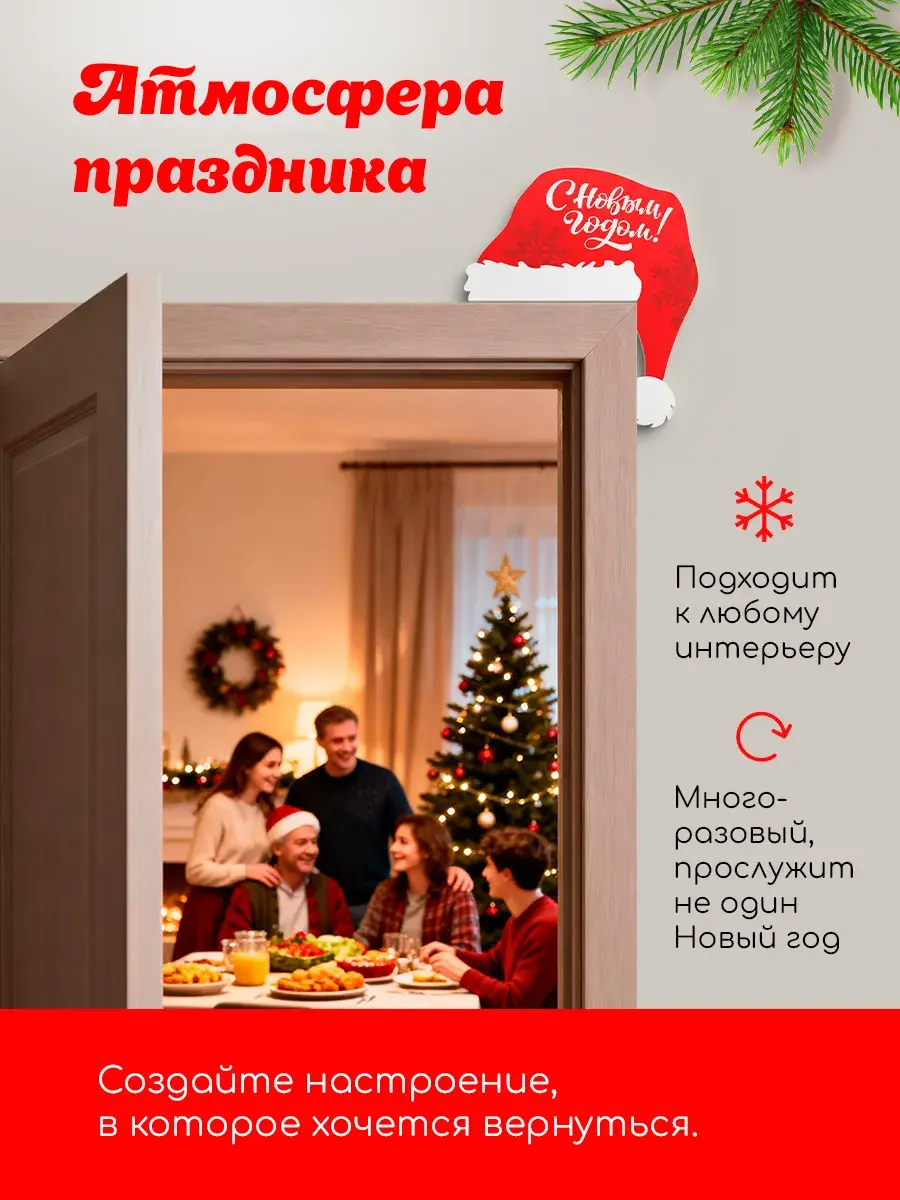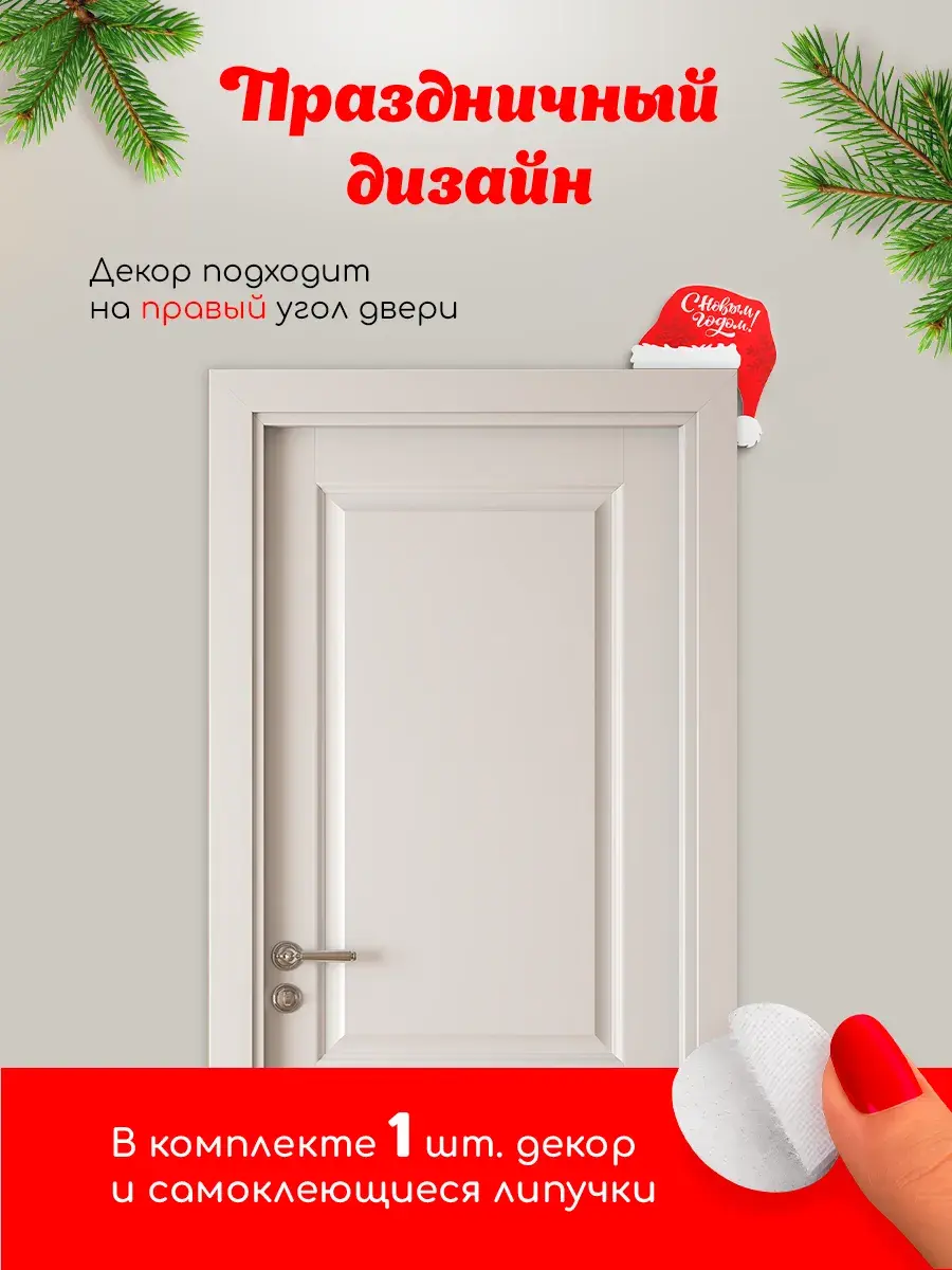 Новогодние украшения создают в доме атмосферу волшебства и ожидания чудес. Наши новогодние украшения для двери — идеальное решение для тех, кто хочет подчеркнуть уникальность новогоднего декора. Предлагаем вашему вниманию украшение, которое станет ключевым элементом новогоднего оформления дома. Угловое расположение и объёмная наклейка создают эффект объема, добавляя двери особый шарм.