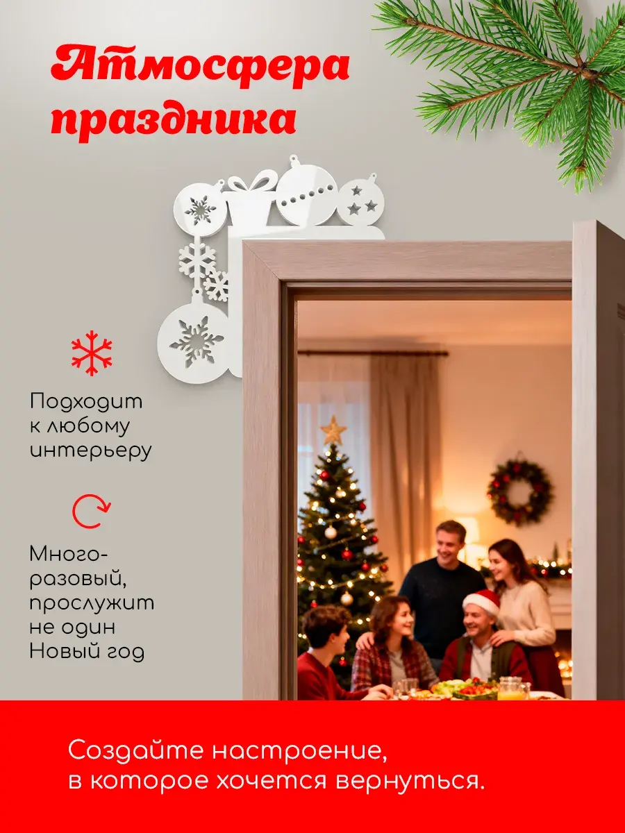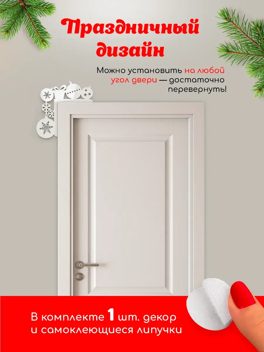 Новогодние украшения создают в доме атмосферу волшебства и ожидания чудес. Наши новогодние украшения для двери — идеальное решение для тех, кто хочет подчеркнуть уникальность новогоднего декора. Предлагаем вашему вниманию украшение, которое станет ключевым элементом новогоднего оформления дома. Угловое расположение и объёмная наклейка создают эффект объема, добавляя двери особый шарм. Новогодний декор направлен на создание праздничного настроения. Наклейка отличается высоким качеством исполнения и детальной проработкой элементов. Украшения идеально подойдут для применения как внутри, так и снаружи вашего дома. Праздники — это время, когда хочется, чтобы каждый уголок дома сиял, и наш новогодний декор поможет вам в этом. Мы предлагаем новогодние элементы, которые украсят ваш дом и подчеркнут его индивидуальность в новому году. Двери, украшенные подобным образом, становятся настоящим символом встречи нового года. Такое украшение не только добавит праздничного настроения, но и станет замечательным дополнением к другим новогодним элементам декора. Украшения включают в себя детали, напоминающие новогодние игрушки, что подчеркивает атмосферу праздника. Новый год — это время, когда хочется изменения и обновления в окружающем пространстве, и наши украшения помогут вашему дому засиять по-новому. Подготовьте ваш дом к празднику с нашим изысканным и стильным новогодним декором, который станет изюминкой во всей концепции праздничного оформления.