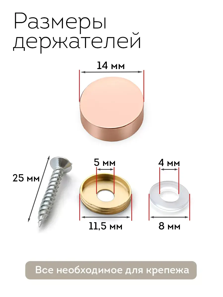 Эти держатели созданы для удобного и красивого размещения зеркал или табличек на стене, что позволит создать гармоничную композицию и добавить изысканности вашему дому. Благодаря дистанционному креплению, между закрепляемой поверхностью и стеной остается небольшое пространство, что придает изделию легкости и воздушности.
