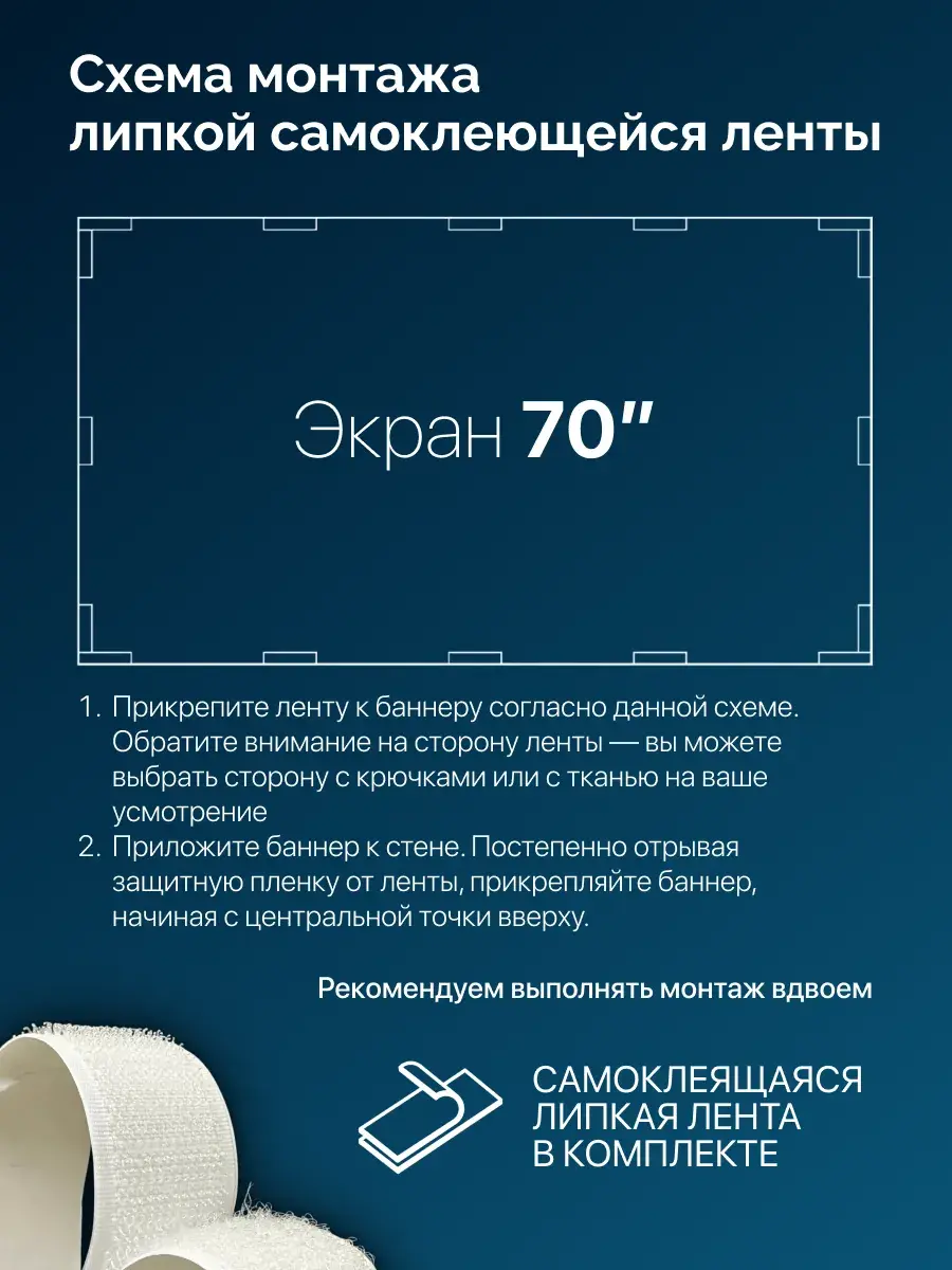 Рекомендации по монтажу экрана с помощью липкой самоклеющейся ленты (в комплекте):