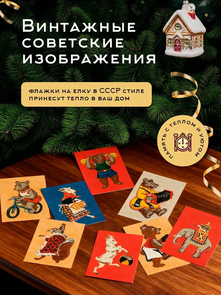 Флажки на елку в ретро-стиле СССР — это уникальный декоративный элемент, который придаст праздничную атмосферу и создаст ностальгическое настроение. Изделие выполнено с высокой степенью детализации, что придает ему неповторимый колорит прошлого.