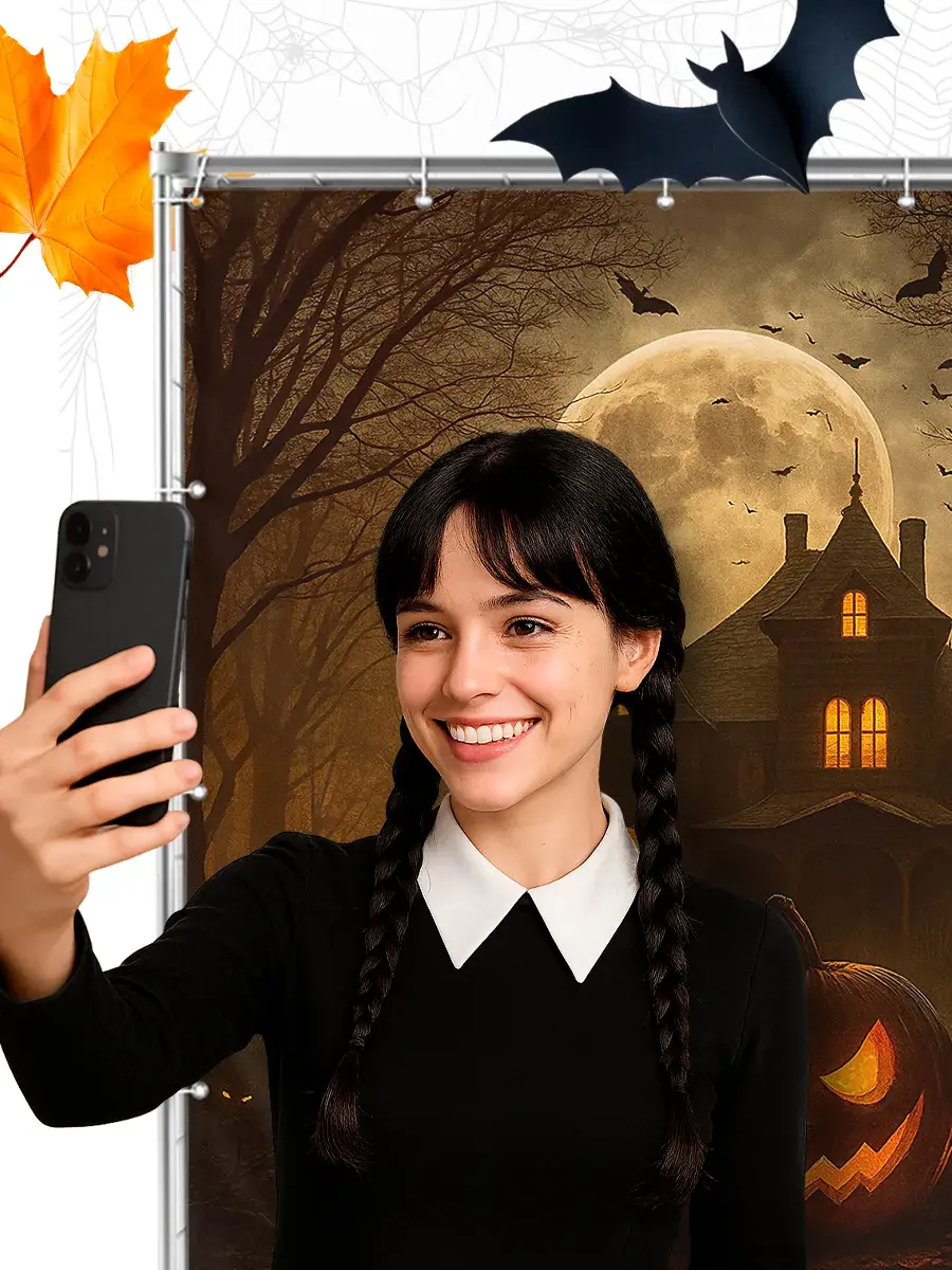 Запустите хэллоуинское безумие с нашим универсальным фотофоном! Идеальный реквизит для любого мероприятия: от утренника в детском саду до квартирника поколения Z.