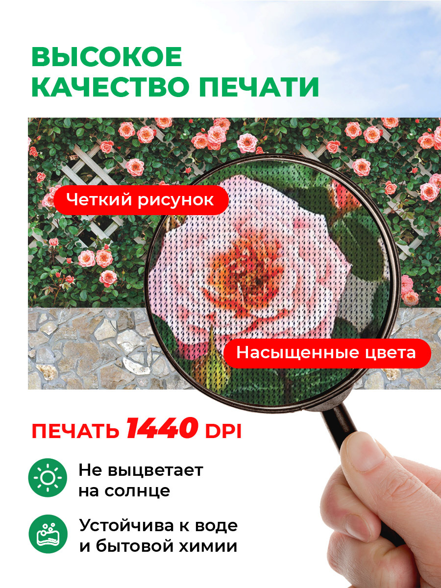 Яркий и реалистичный рисунок превратит обычный забор в живописное полотно, радующее глаз и создающее атмосферу уюта. Функциональная сетка станет стильным украшением вашей дачи и участка около загородного дома, удачно впишется в ландшафтный дизайн сада.