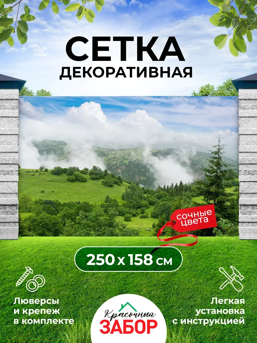 Фотосетка на забор горный пейзаж в облаках 2,5х1,58 м