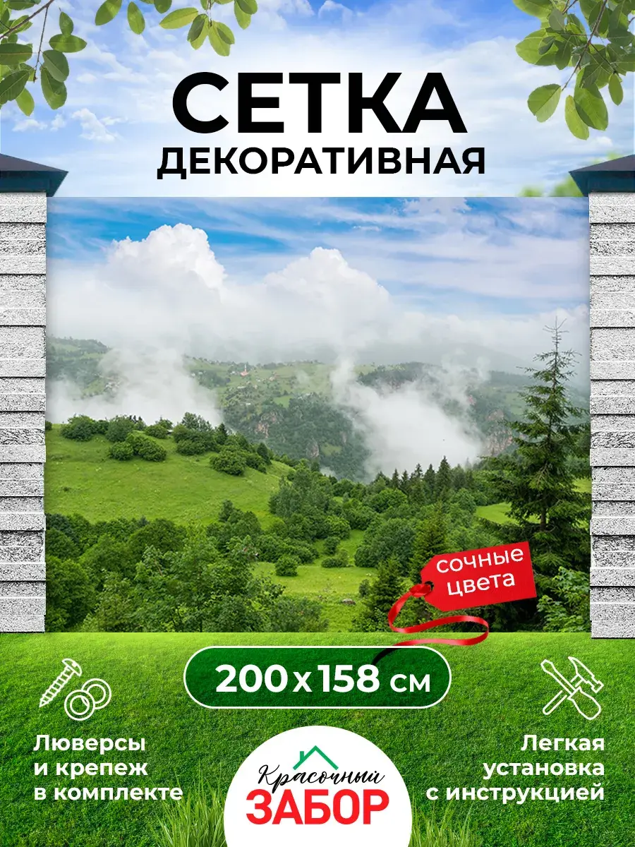 Фотосетка на забор горный пейзаж в облаках 2х1,58 м