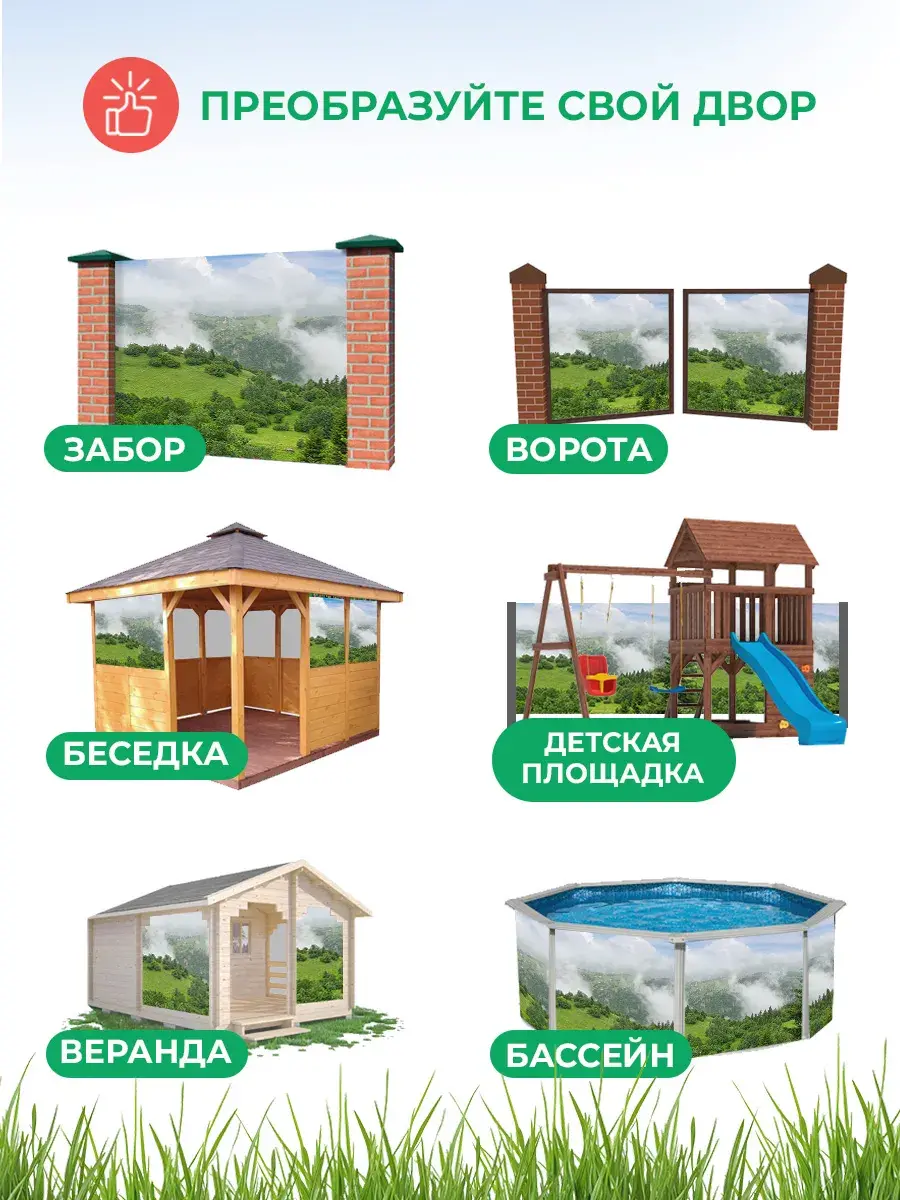Мечтаете о преображении вашего сада, создании уютной атмосферы и защите от посторонних взглядов? Фотосетка на забор от бренда "Красочный забор" – это идеальное решение для воплощения ваших идей! Яркий и реалистичный рисунок превратит обычный забор в живописное полотно, радующее глаз и создающее неповторимую атмосферу уюта. Эта сетка станет не только украшением вашего сада, но и стильным элементом ландшафтного дизайна. Преимущества сеток от нашего бренда: Долговечность и прочность: Изготовленная из высококачественного ПВХ, фотосетка выдерживает мороз до -30 и жару до +70, устойчива к перепадам температур и механическим повреждениям. Она прослужит вам долгие годы, сохраняя свой первоначальный вид. Полотно пожаробезопасно и не поддерживает горение! Универсальность: Фотосетку можно использовать для украшения заборов, фасадов домов, беседок, ворот, детских площадок, фонтанов, а также для зонирования пространства в саду и на огороде. Защита от солнца и насекомых: обеспечивает защиту от солнца и насекомых, создавая комфорт для отдыха в беседке или на террасе. Устойчивость к выцветанию: Уникальные красочные рисунки и фотографии в высоком разрешении нанесены методом печати, устойчивой к УФ-лучам, что гарантирует сохранение яркости цветов на протяжении долгого времени. Доступны множество принтов на любой вкус: цветы, камни, доски, водопады, живая изгородь, кустарники, растения, пейзажи. Как установить фотосетку? В комплекте вы найдете все необходимые элементы: люверсы, саморезы и пластиковые хомуты. Вы можете выбрать для себя наиболее подходящий способ крепления. Важно! Люверсы на полотно не установлены. Предусмотрена самостоятельная установка люверсов на предварительно подготовленную сетку нужного размера. Подробная инструкция с иллюстрациями представлена на слайдах в карточке товара. В ассортименте магазина широкая размерная линейка: 200х158, 250х158, 300х158, 316х200, 600х158 и 600х216 см. А так же мы предлагаем аналогичный виды выполненные на баннере.