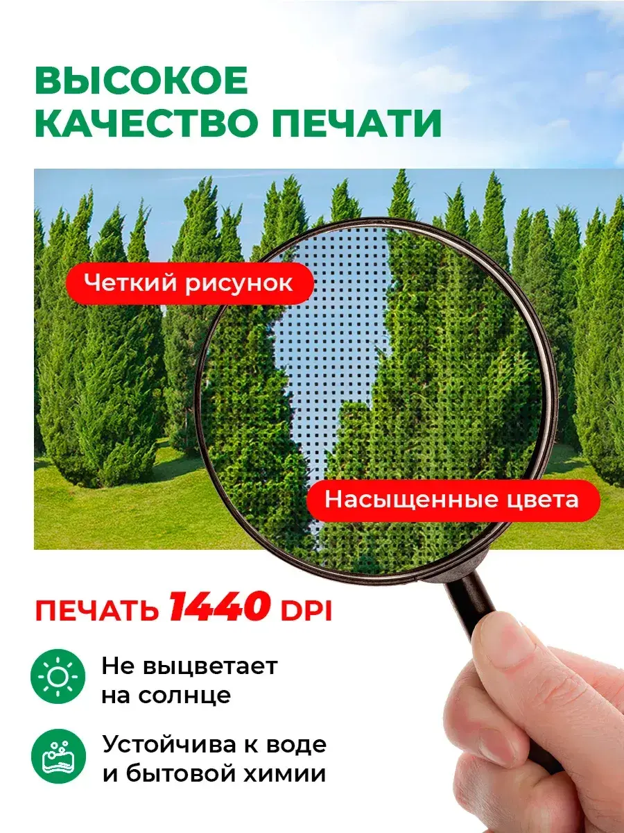 Мечтаете о преображении вашего сада, создании уютной атмосферы и защите от посторонних взглядов? Фотосетка на забор от бренда "Красочный забор" – это идеальное решение для воплощения ваших идей! Яркий и реалистичный рисунок превратит обычный забор в живописное полотно, радующее глаз и создающее неповторимую атмосферу уюта. Эта сетка станет не только украшением вашего сада, но и стильным элементом ландшафтного дизайна. Преимущества сеток от нашего бренда: Долговечность и прочность: Изготовленная из высококачественного ПВХ, фотосетка выдерживает мороз до -30 и жару до +70, устойчива к перепадам температур и механическим повреждениям. Она прослужит вам долгие годы, сохраняя свой первоначальный вид. Полотно пожаробезопасно и не поддерживает горение! Универсальность: Фотосетку можно использовать для украшения заборов, фасадов домов, беседок, ворот, детских площадок, фонтанов, а также для зонирования пространства в саду и на огороде. Защита от солнца и насекомых: обеспечивает защиту от солнца и насекомых, создавая комфорт для отдыха в беседке или на террасе. Устойчивость к выцветанию: Уникальные красочные рисунки и фотографии в высоком разрешении нанесены методом печати, устойчивой к УФ-лучам, что гарантирует сохранение яркости цветов на протяжении долгого времени. Доступны множество принтов на любой вкус: цветы, камни, доски, водопады, живая изгородь, кустарники, растения, пейзажи. Как установить фотосетку? В комплекте вы найдете все необходимые элементы: люверсы, саморезы и пластиковые хомуты. Вы можете выбрать для себя наиболее подходящий способ крепления. Важно! Люверсы на полотно не установлены. Предусмотрена самостоятельная установка люверсов на предварительно подготовленную сетку нужного размера. Подробная инструкция с иллюстрациями представлена на слайдах в карточке товара. В ассортименте магазина широкая размерная линейка: 200х158, 250х158, 300х158, 316х200, 600х158 и 600х216 см. А так же мы предлагаем аналогичный виды выполненные на баннере.