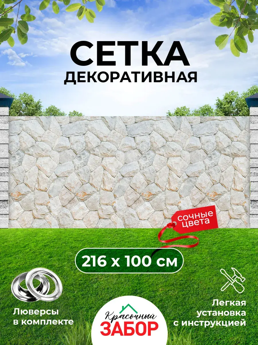 Мечтаете о преображении вашего сада и дачи, создании уютной атмосферы и защите от посторонних взглядов? Фотосетка на забор от бренда "Красочный забор" – это идеальное решение для воплощения ваших идей! Яркий и реалистичный рисунок превратит обычный забор в живописное полотно, радующее глаз и создающее атмосферу уюта. Функциональная сетка станет стильным украшением вашей дачи и участка около загородного дома, удачно впишется в ландшафтный дизайн сада. Преимущества сеток от нашего бренда: Долговечность и прочность: Материал основы - высококачественный ПВХ высокой плотности, выдерживает мороз до -30 и жару до +70, устойчива к перепадам температур и механическим повреждениям. Она прослужит вам долгие годы, сохраняя свой первоначальный вид. Сетка пожаробезопасна и не поддерживает горение! Универсальная фотосетка может послужить не только для украшения заборов, вы можете оформить ей фасад дома, беседку, ворота, детскую площадку, бассейн, балкон. Защита от солнца и насекомых: обеспечивает защиту от солнца и насекомых, создавая комфорт для отдыха в беседке или на террасе. Устойчивость к выцветанию: Уникальные красочные рисунки и фотографии в высоком разрешении нанесены методом печати, устойчивой к УФ-лучам, что гарантирует сохранение яркости цветов на протяжении долгого времени. Доступны множество принтов на любой вкус: цветы, камни, доски, водопады, живая изгородь, кустарники, растения, пейзажи. Как установить фотосетку? В комплекте к фотосетке идут в необходимом количестве люверсы, из расчета шага 40 см. Люверсы на полотно не установлены, так как во 1-ых существует вариант монтажа на мебельные скобы, во 2-ых сначала полотно можно подрезать до нужного вам размера и потом уже установить кольца. Подробная инструкция по выборе крепежа и установке представлена на слайдах в карточке товара. В ассортименте магазина широкая размерная линейка: 216х100, 316х100, 200х158, 250х158, 300х158, 316х200, 600х158 и 600х216 см. Так же мы предлагаем аналогичные виды рисунков на баннере.