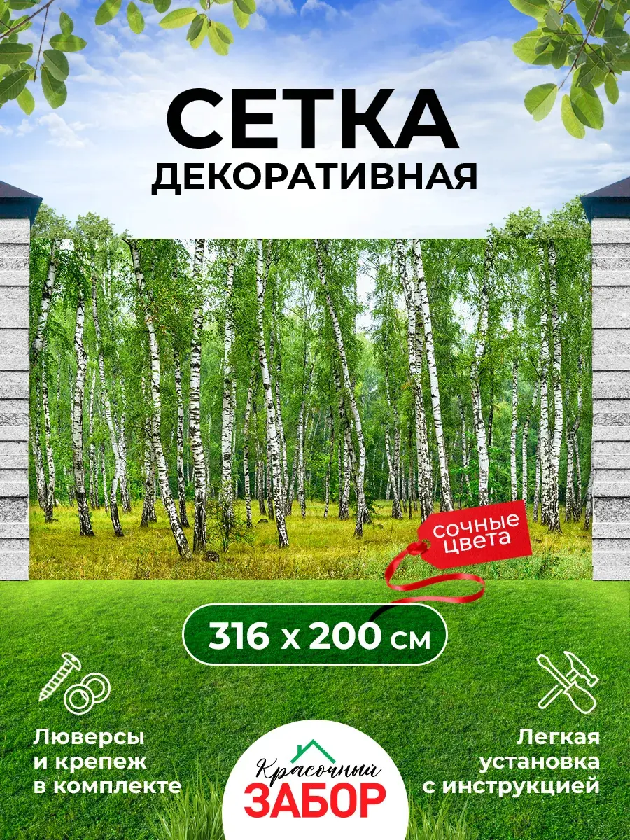 Фотосетка на забор пейзаж Березовая роща 3,16х2 м