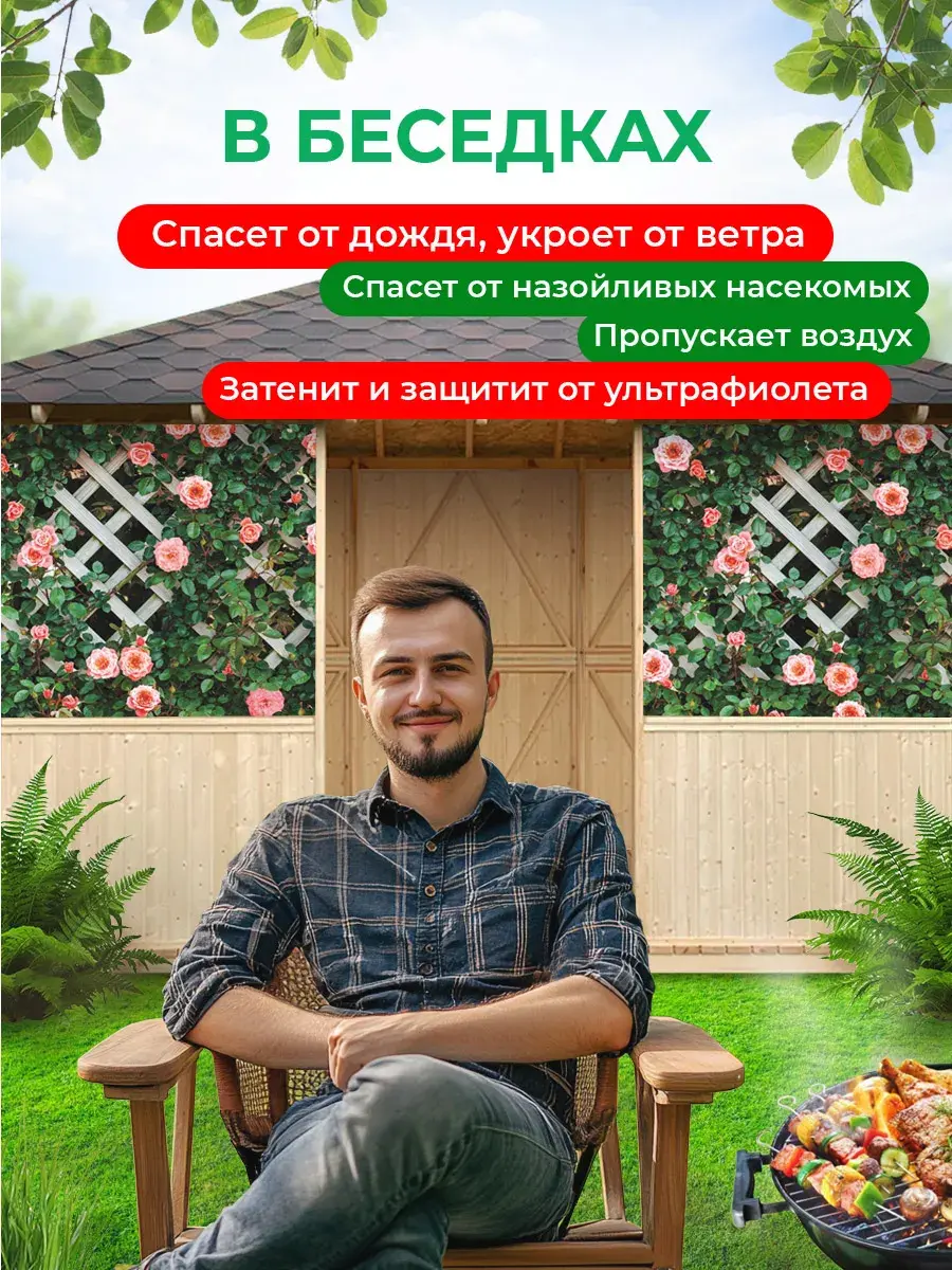 Защита от солнца и насекомых: обеспечивает защиту от солнца и насекомых, создавая комфорт для отдыха в беседке или на террасе.
