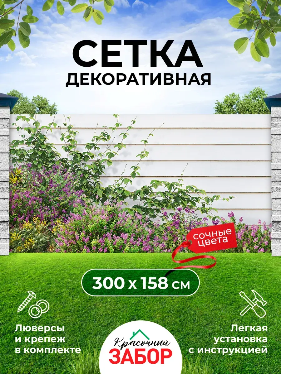 Универсальность применения: Фотосетку можно использовать для украшения заборов, фасадов домов, беседок, ворот, детских площадок, фонтанов, а также для зонирования пространства в саду и на огороде.