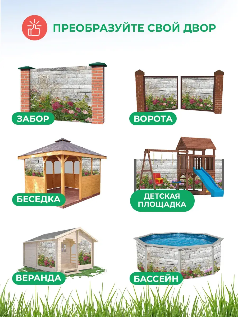 Мечтаете о преображении вашего сада, создании уютной атмосферы и защите от посторонних взглядов? Фотосетка на забор от бренда "Красочный забор" – это идеальное решение для воплощения ваших идей! Яркий и реалистичный рисунок превратит обычный забор в живописное полотно, радующее глаз и создающее неповторимую атмосферу уюта. Эта фотосетка станет не только украшением вашего сада, но и стильным элементом ландшафтного дизайна. Преимущества фото-баннеров от нашего бренда: Долговечность и прочность: Изготовленная из высококачественной виниловой баннерной сетки, фотосетка устойчива к атмосферным воздействиям, перепадам температур и механическим повреждениям. Она прослужит вам долгие годы, сохраняя свой первоначальный вид. Сетка от нашего бренда пожаробезопасна и не поддерживает горение! Универсальность применения: Фотосетку можно использовать для украшения заборов, фасадов домов, беседок, ворот, детских площадок, фонтанов, а также для зонирования пространства в саду и на огороде. Защита от солнца и насекомых: Фотосетка обеспечивает защиту от ультрафиолетовых лучей и частично препятствует проникновению насекомых, создавая комфортные условия для отдыха в беседке или на террасе. Устойчивость к выцветанию: Уникальные красочные рисунки и фотографии в высоком разрешении нанесены методом печати, устойчивой к УФ-лучам, что гарантирует сохранение яркости и насыщенности цветов на протяжении долгого времени. Как установить фотосетку? В комплекте с фотосеткой вы найдете все необходимые элементы для установки: люверсы, саморезы и пластиковые хомуты. Вы можете выбрать наиболее подходящий способ крепления. Важно! Люверсы на полотно не установлены, вам необходимо самостоятельно их установить, предварительно подготовив сетку нужного размера, обрезав ее с учетом загибов 3-4 см. Подробная инструкция с иллюстрациями представлена на слайдах в карточке товара. В ассортименте магазина у каждого вида имеется 6 разнообразных размеров. А так же мы предлагаем аналогичный виды выполненные на баннере.