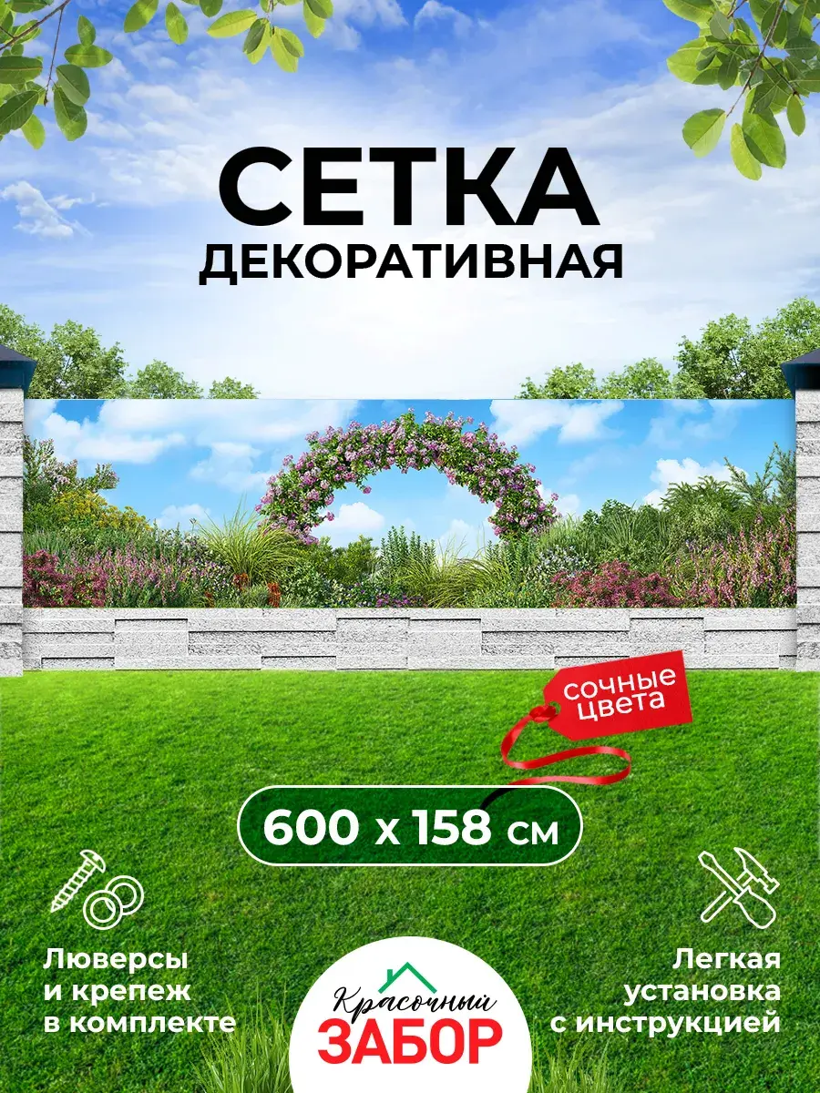 Фотосетка на забор яркая Цветочная арка 6х1,58 м