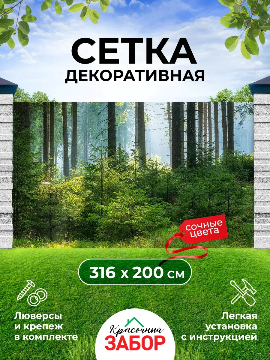Фотосетка на забор зеленый пейзаж лес елки 3,16х2 м