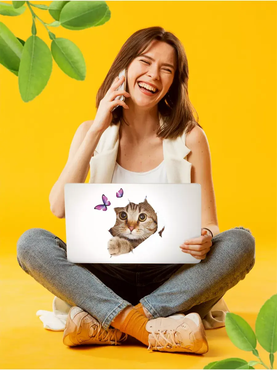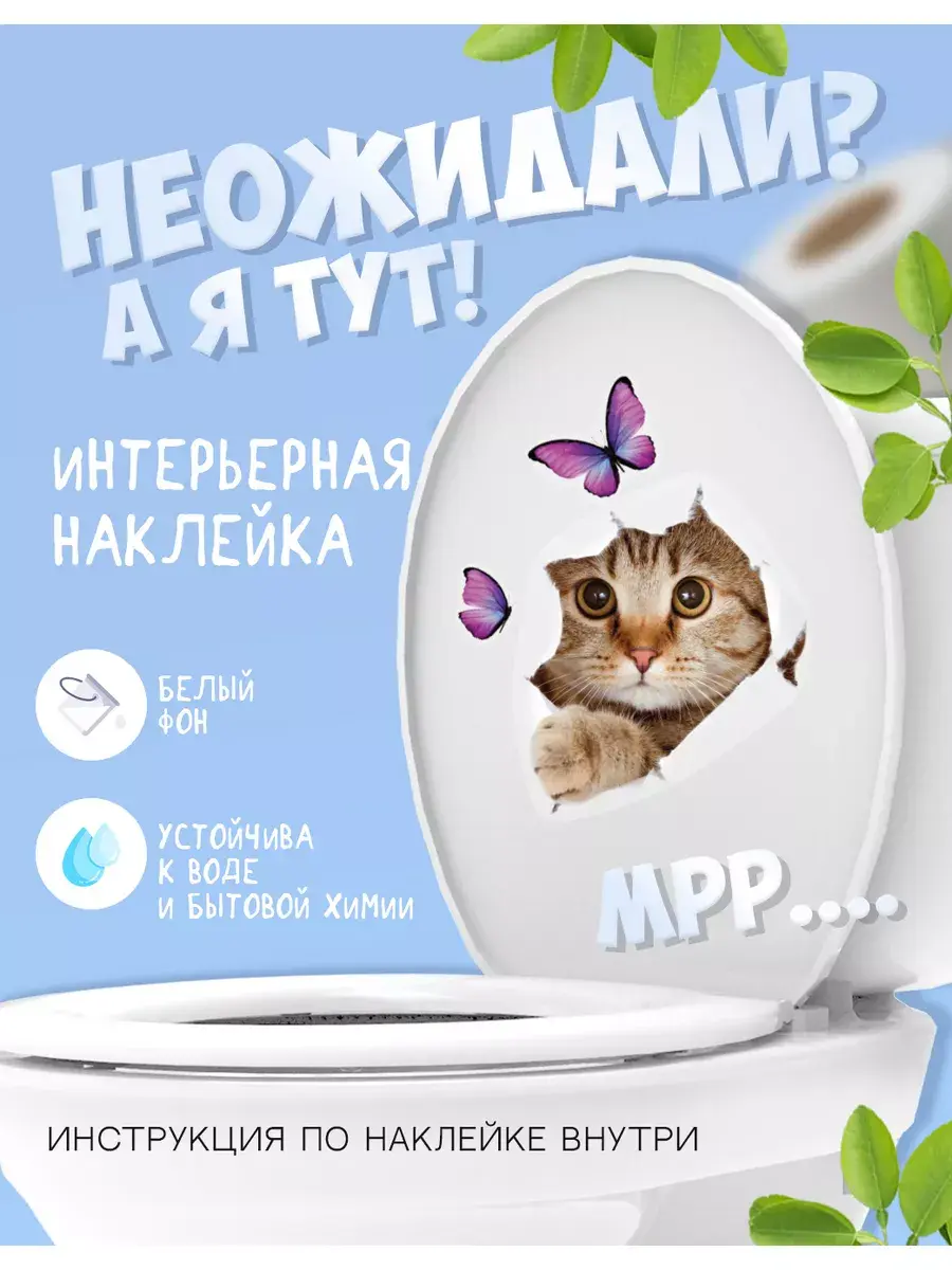 Интерьерная наклейка с милым котиком и бабочками - отличный подарок, который привнесет веселье и декоративность в интерьер. Наш яркий стикер добавит позитивных и прикольных ноток в ваш дом. Наши яркие наклейки напечатаны на качественной самоклеющейся виниловой пленке белого цвета. Вы можете нанести их на различные гладкие поверхностях, такие как двери, гладкие стены, холодильник, унитаз и мебель.