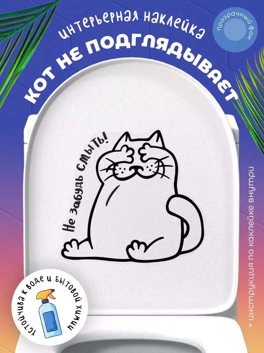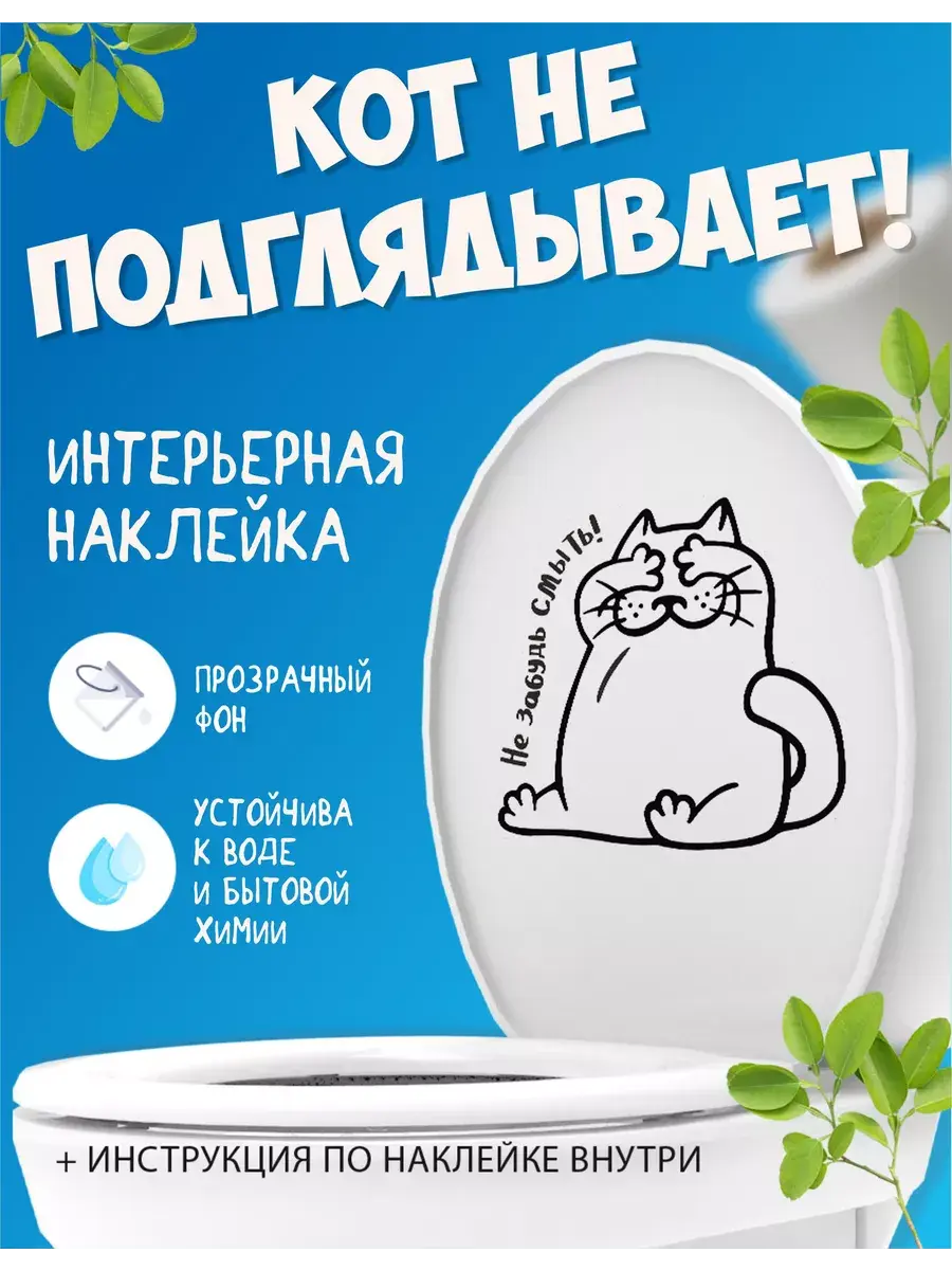Наклейка интерьерная с митым котом на унитаз – идеальное дополнение для интерьера вашей ванной комнаты или туалета. Эта веселая и позитивная наклейка станет любимой детской деталью в вашем доме.