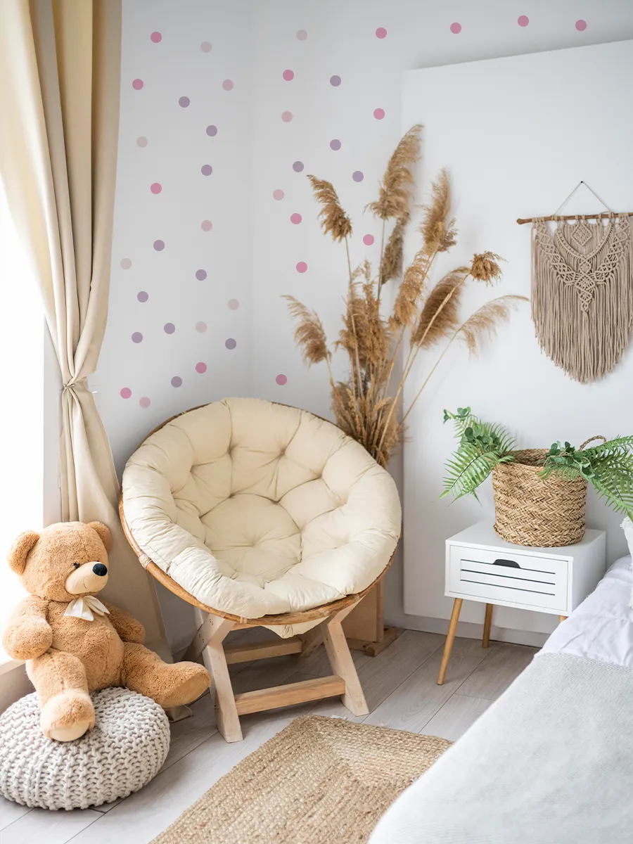 Добавьте уникальности в детскую комнату вашего ребёнка с помощью интерьерных наклеек-кружочков. Наши интерьерные наклейки помогут создать уютный уголок для игр и отдыха, внося в детскую атмосферу веселья и фантазии. Самоклеящиеся наклейки легко крепятся на стену, преобразуя комнату в чудесный домик для вашего маленького сокровища.