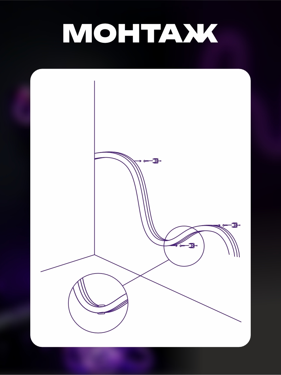 Крепление оснащено специальными зажимами, которые обеспечивают надежную фиксацию гибкого неона на различных поверхностях, таких как стены, потолки, мебель и другие горизонтальные и вертикальные поверхности. Они позволяют быстро и легко закрепить неоновую трубку без необходимости использования дополнительных инструментов.