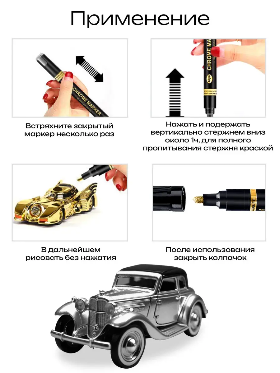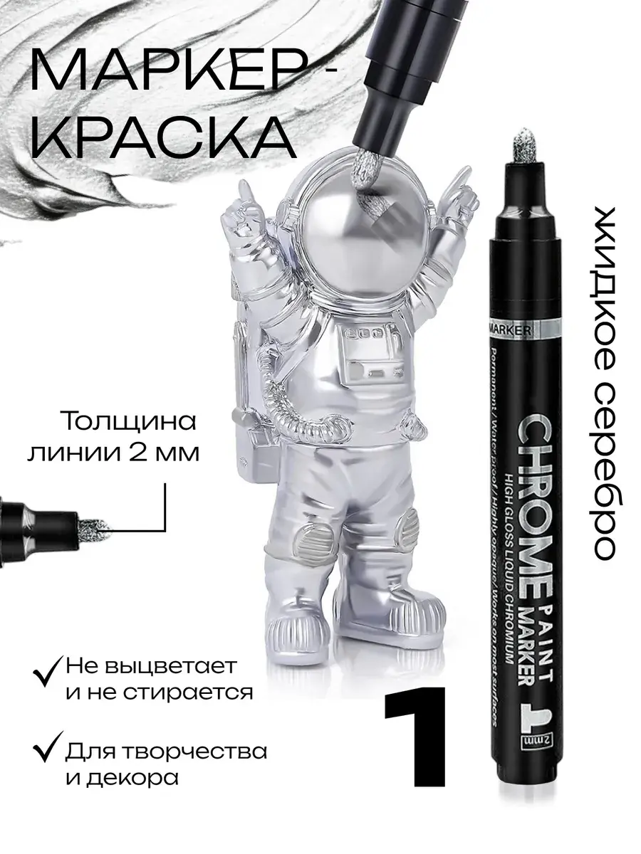 Маркер НЕСТИРАЕМЫЙ с зеркальным серебряным (стальным хромовым) эффектом со специальными хромированными гальваническими чернилами. Высокое содержанием пигмента и укрывистость покрытия обеспечивают непревзойденное зеркальное покрытие почти на всех гладких поверхностях, таких как пластик, стекло, дерево, резина, камень, металл, керамика. Их универсальность делает их подходящими для разнообразных задач — от граффити и скетчинга до мелкого ремонта и моделирования.