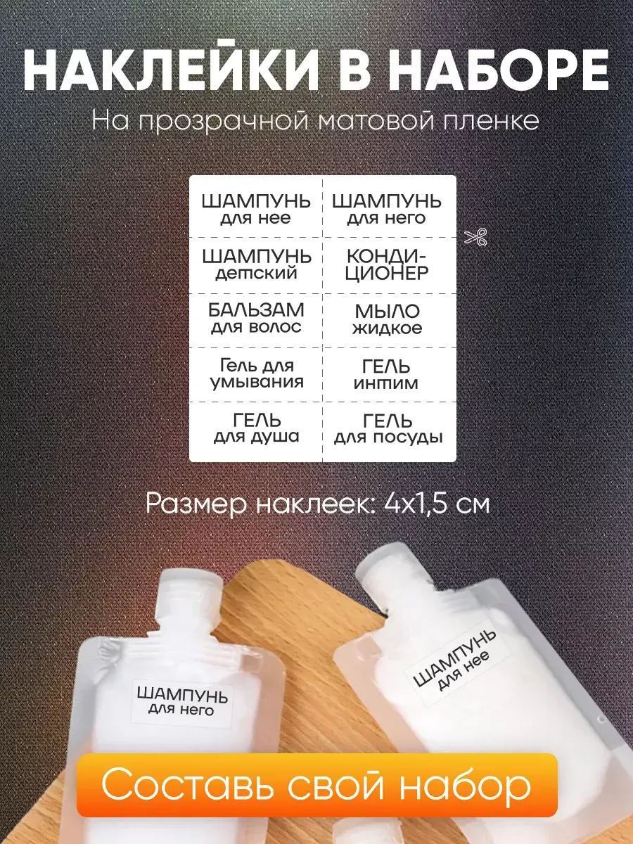 В комплекте с емкостями идут 10 наклеек, которые помогут вам маркировать флаконы и создать свой индивидуальный набор косметики. Мягкие полиэтиленовые флаконы безопасны для вашей косметики, обеспечивая надежную защиту от утечек и повреждений.