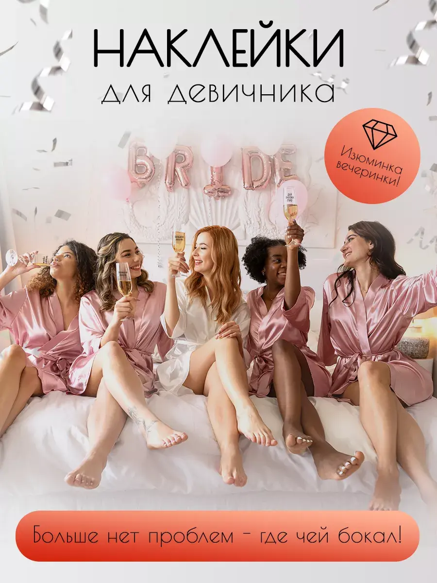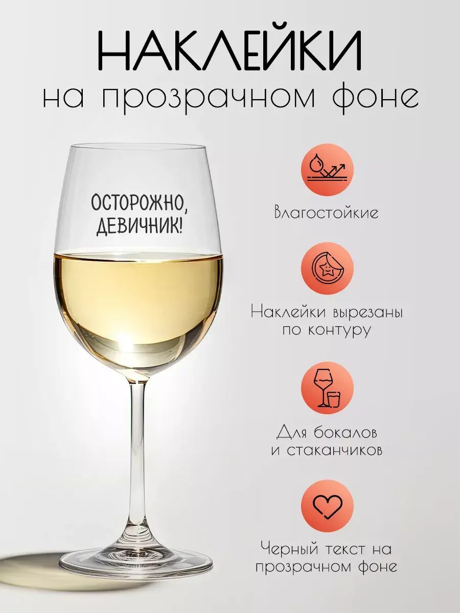 Наклейки на бокалы на прозрачной виниловой пленке для самого лучшего веселого девичника! Стильный праздник - уже рядом! И теперь нет проблемы - "Где мой бокал?" 41 штука, не считая наклейку с сердечком - на любой вкус для большой веселой колмпании!