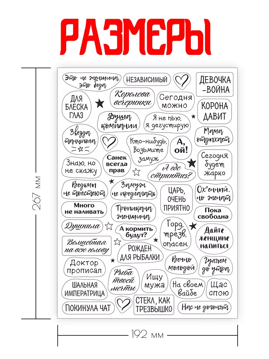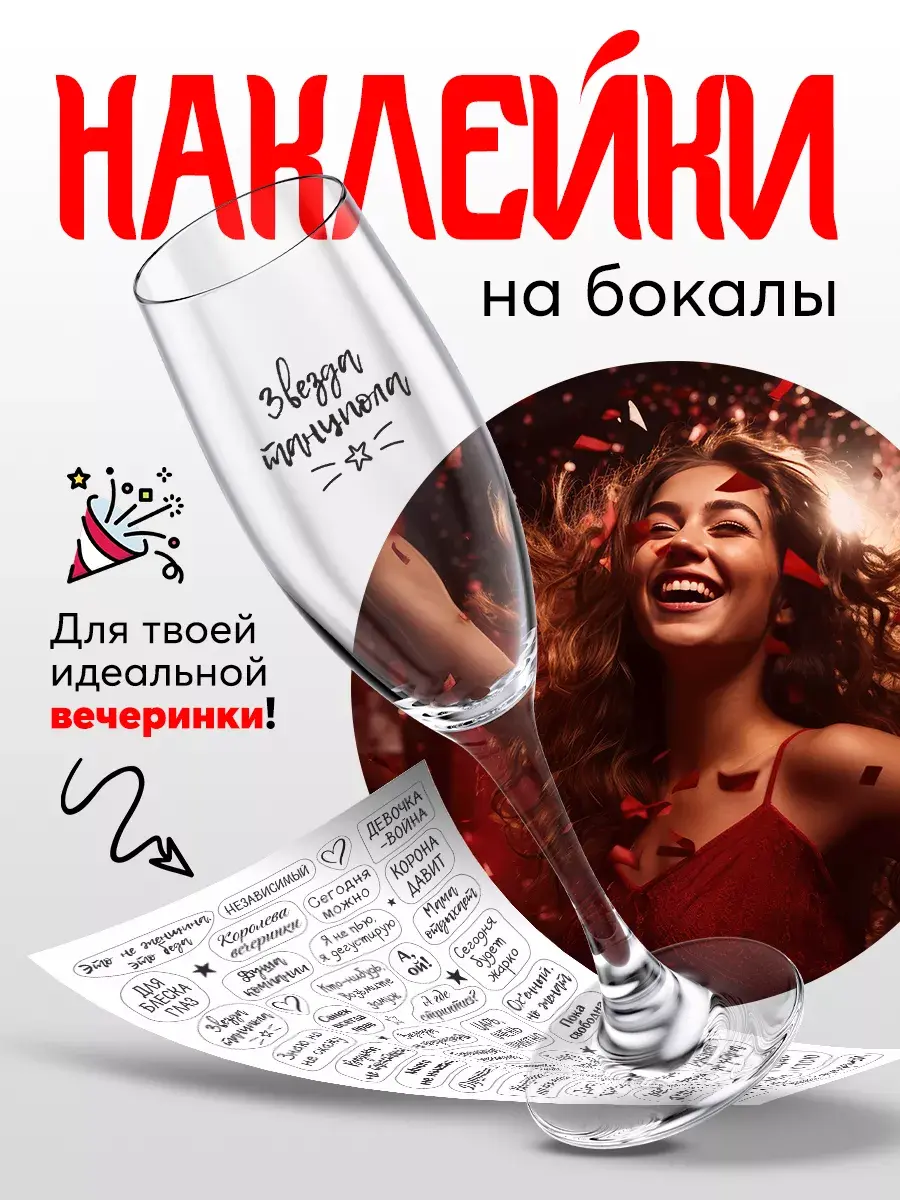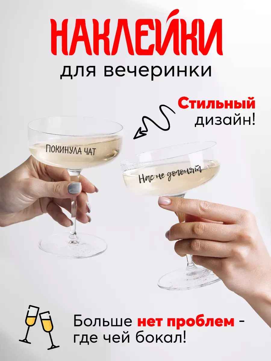 Наклейки на бокалы на прозрачной виниловой пленке для самой лучшей вечеринки! Стильный праздник - уже рядом! И теперь нет проблемы - "Где мой бокал?" 41 штука, не считая 3х наклеек с сердечком - на любой вкус для большой веселой колмпании!