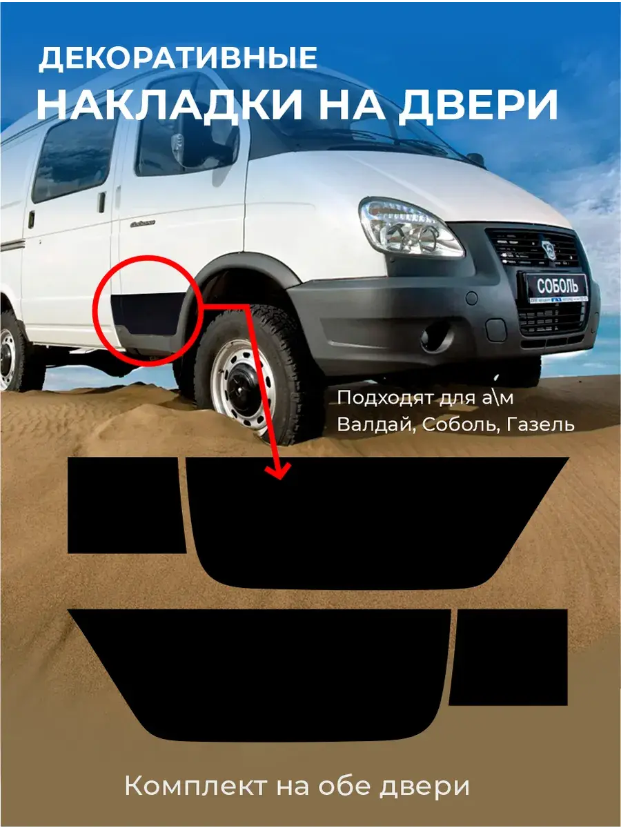 Декоративные накладки на двери для а/м Газель Бизнес, Валдай, Соболь черного цвета.