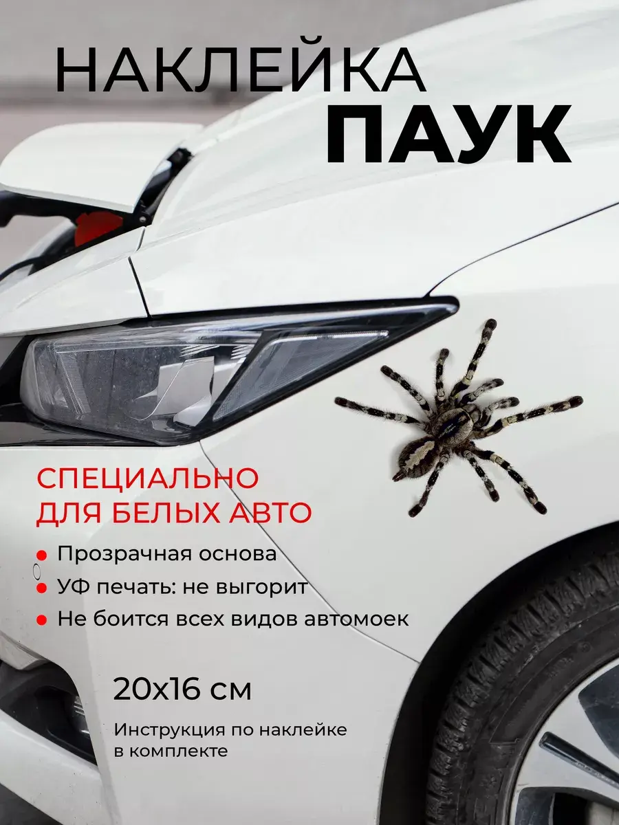 Вы ищете качественную виниловую наклейку на автомобиль с изображением паука? У нас есть идеальное решение для вас - наклейка "Паук" с прозрачной основой. Стикер идеально подходит для белых автомобилей, так как изображение паука напечатано на прозрачной пленке и будет хорошо видно на светлом фоне.
