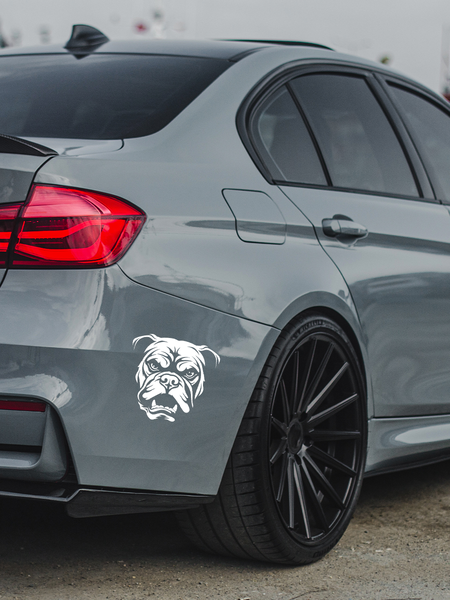 Наш стикер имеет прозрачную основу, что позволяет ему легко сочетаться с любым цветом вашего автомобиля, мотоцикла или стены. Белое изображение злой собаки придаст вашему транспортному средству или интерьеру особый шарм и выразительность. Особенно круто стикер будет смотреться на темных поверхностях и на стекле.