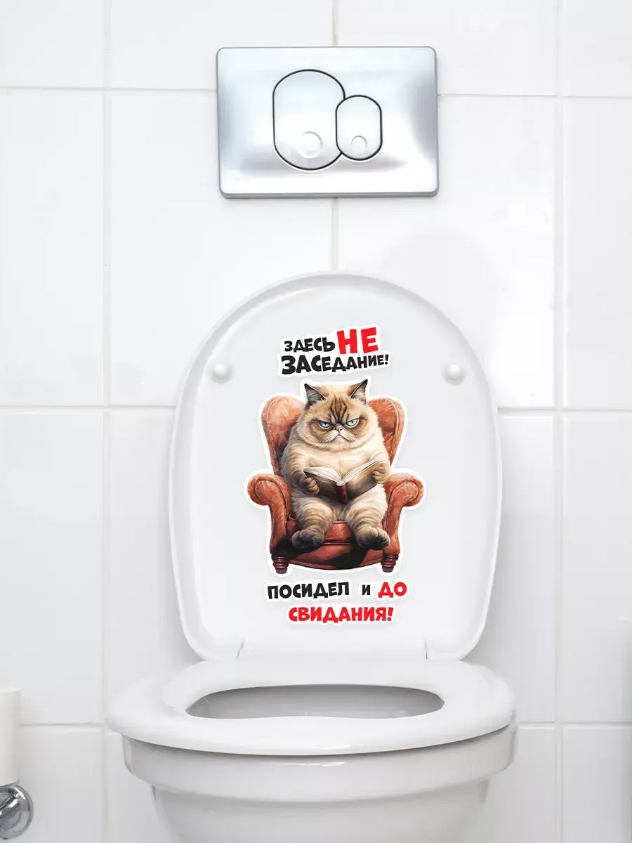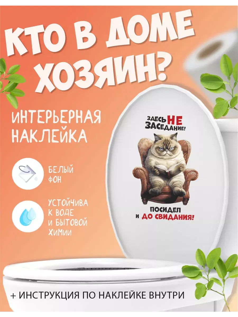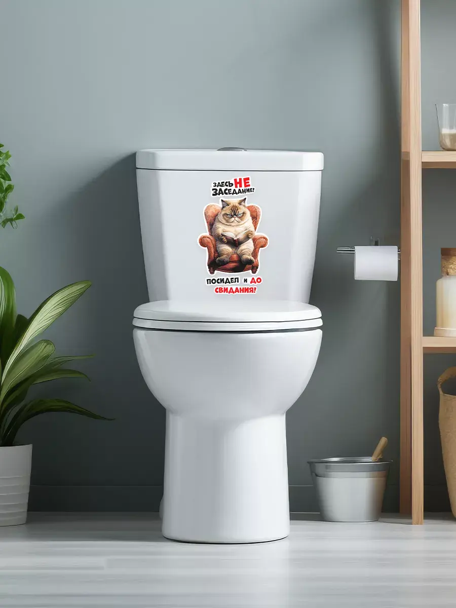 Ваша ванная комната или туалет станут еще уютнее и забавнее благодаря этой замечательной наклейке с котом на крышке унитаза! Этот веселый, позитивный и милый элемент декора внесет радость в любой дом. Стильная надпись «Здесь не заседание, посидел и до свидания» придаст особый шарм вашему пространству, а возможность менять положение наклейки позволит подогнать её под ваши предпочтения. Наклейка выполнена из высококачественных материалов – водонепроницаемой белой пленки, которая прекрасно переносит условия высокой влажности, характерные для ванных комнат и туалетов. Благодаря этому она прослужит долго, сохраняя свой первоначальный вид. Качественная печать обеспечивает четкие цвета и детализацию изображения даже при близком рассмотрении. Это отличный способ добавить индивидуальности и стиля в пространство вашего дома без значительных затрат времени и денег. Котик, который смотрится так грозно, на самом деле очень добрый и обязательно принесет улыбку каждому, кто его увидит. Не упускайте возможности превратить обычную ванную комнату или туалет в место, полное радости и хорошего настроения с этим прекрасным декором!