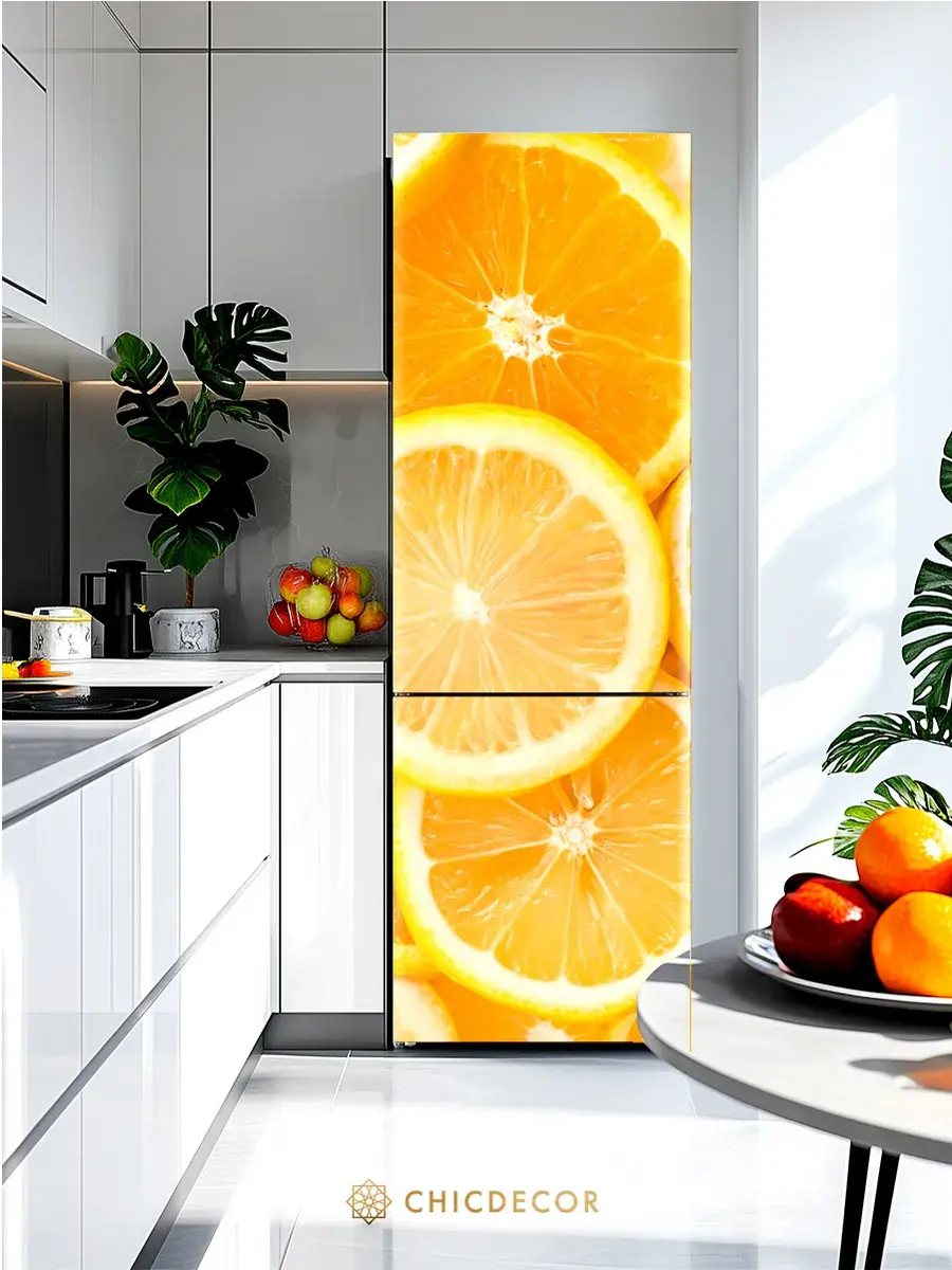 Обновите интерьер кухни без лишних затрат! Интерьерный декор на холодильник от CHIC DECOR Discount - новый стильный акцент в вашем доме.В наличии идентичные рисунки с ламинацией - такие наклейки не выгорят со временем на солнце и проще в уходе.
