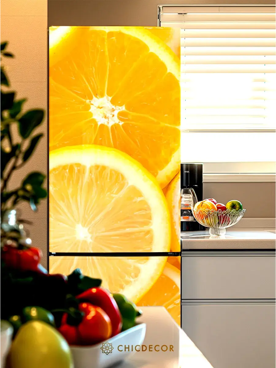 Наклейка на холодильник от CHIC DECOR Discount - это прекрасный способ добавить яркий акцент в интерьер вашей кухни. Большая яркая наклейка станет настоящим украшением вашего холодильника, преобразив его в стильный элемент декора, добавив яркий акцент в декор вашего дома. Изготовленная из высококачественного винила, наклейка проста в нанесении и удалении, не оставляя следов на поверхности.