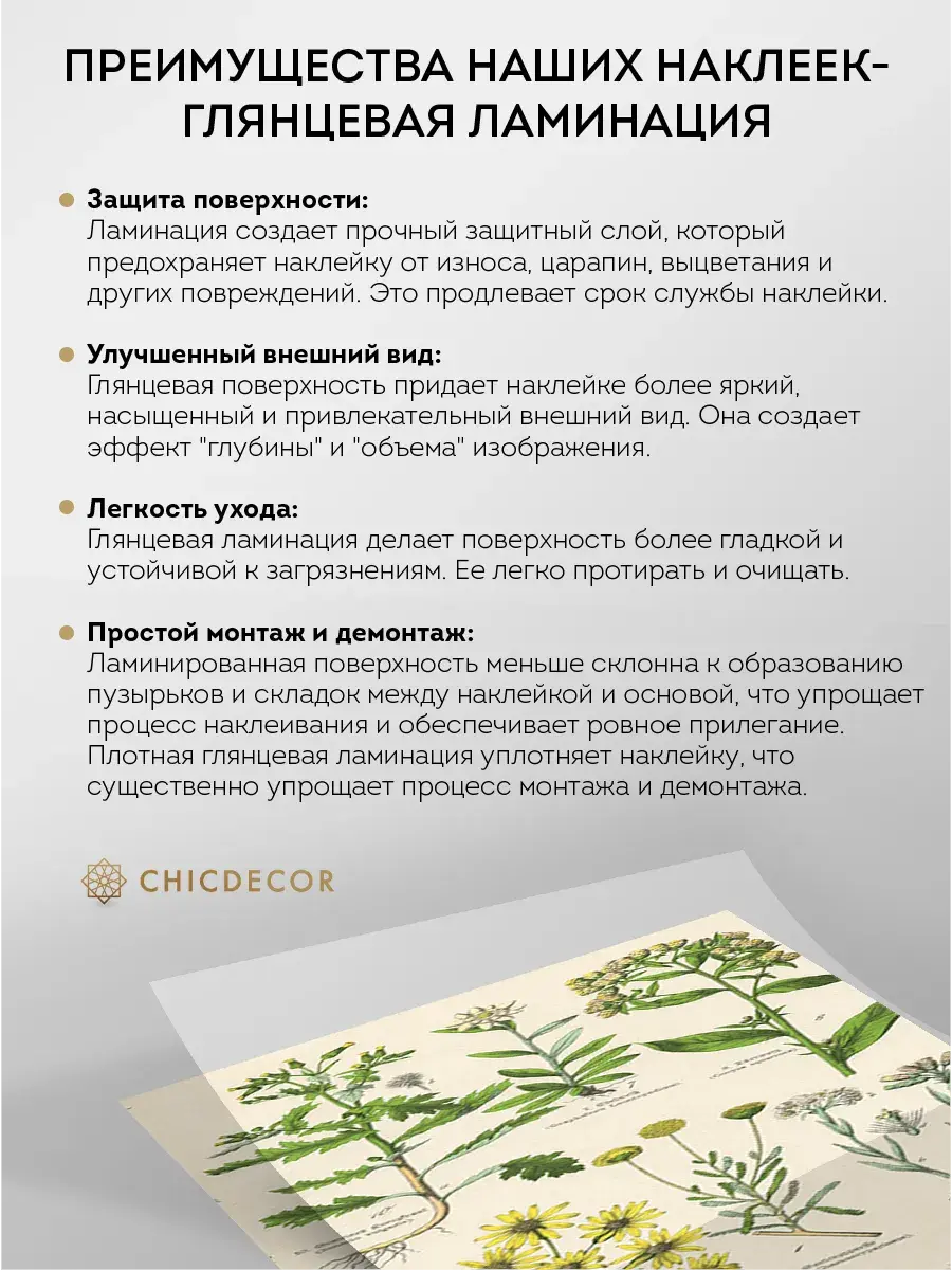 Преимущества наклеек CHIC DECOR - ГЛЯНЦЕВАЯ ЛАМИНАЦИЯ
