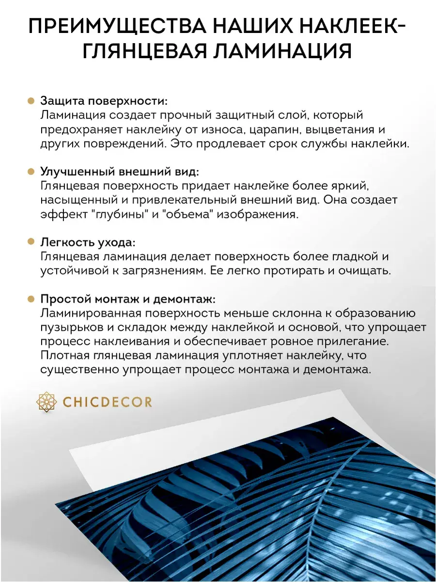 Наклейка на холодильник от CHIC DECOR - это прекрасный способ добавить яркий акцент в интерьер вашей кухни. Большая наклейка станет настоящим украшением вашего холодильника, преобразив его в стильный элемент декора, добавив яркий акцент в декор вашего дома. Изготовленная из высококачественного плотного винила, наклейка проста в нанесении и удалении, не оставляя следов на поверхности. Преимущества наклеек CHIC DECOR - ГЛЯНЦЕВАЯ ЛАМИНАЦИЯ Наклейка с нашей ламинацией не выгорает на солнце: яркие цвета останутся насыщенными на долгие годы! Защита поверхности: Ламинация создает прочный защитный слой, который предохраняет наклейку от износа, царапин, выцветания и других повреждений. Это продлевает срок службы наклейки. Не боится воды и бытовой химии: легко моется и устойчива к повседневным загрязнениям. Улучшенный внешний вид: Глянцевая поверхность придает наклейке более яркий, насыщенный и привлекательный внешний вид. Она создает эффект "глубины" и "объема" изображения. Легкость ухода: Глянцевая ламинация делает поверхность более гладкой и устойчивой к загрязнениям. Ее легко протирать и очищать. Наклейка устойчива к истиранию: сохраняет свой первозданный вид даже при интенсивном использовании. Простой монтаж и демонтаж: Ламинированная поверхность меньше склонна к образованию пузырьков и складок между наклейкой и основой, что упрощает процесс наклеивания и обеспечивает ровное прилегание. Плотная глянцевая ламинация уплотняет наклейку, что существенно упрощает процесс монтажа и демонтажа. Преобразите свою кухню за считанные минуты с яркой и стильной наклейкой на холодильник от CHIC DECOR! Размер 65х200 см идеально подойдет для большинства стандартных холодильников, а глянцевая ламинация придаст изображению глубину и насыщенность. Забудьте о выцветших и потертых наклейках! Наша наклейка изготовлена с использованием японской печати и немецкой пленки, что гарантирует высокое качество изображения, устойчивость к ультрафиолету, воде, бытовой химии и истиранию. Подробнее о нашем качестве: Японское качество печати: Гарантирует четкость и яркость изображения. Немецкое качество пленки: Обеспечивает долговечность и устойчивость к повреждениям. Бережная упаковка в прочный тубус: Наклейка доедет до вас в целости и сохранности. Обновите интерьер кухни без лишних затрат! Интерьерный декор на холодильник от CHIC DECOR - новый стильный акцент в вашем доме. CHIC DECOR - это стиль, защита и долговечность!