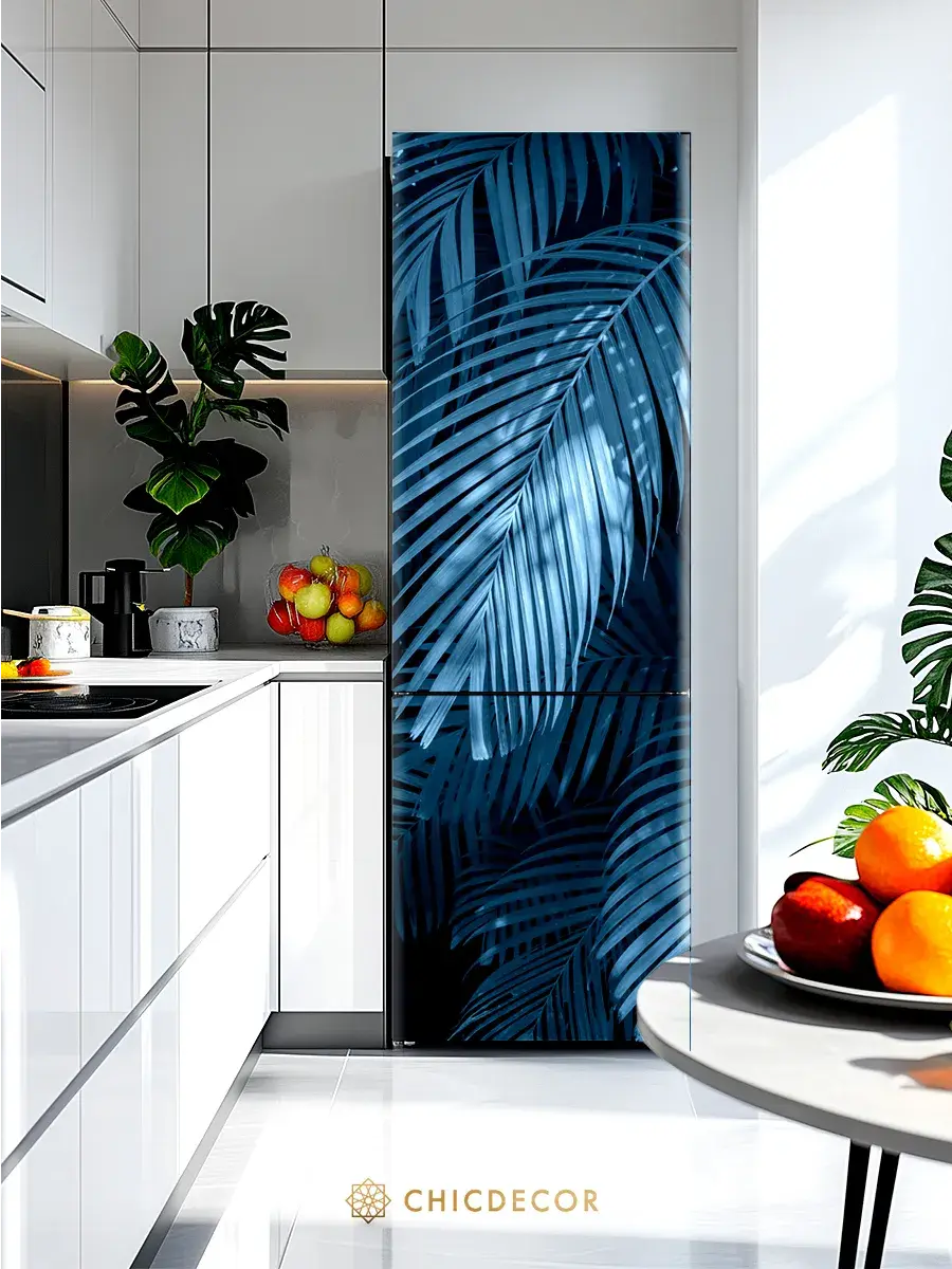 Наклейка интерьерная на холодильник Пальма голубая