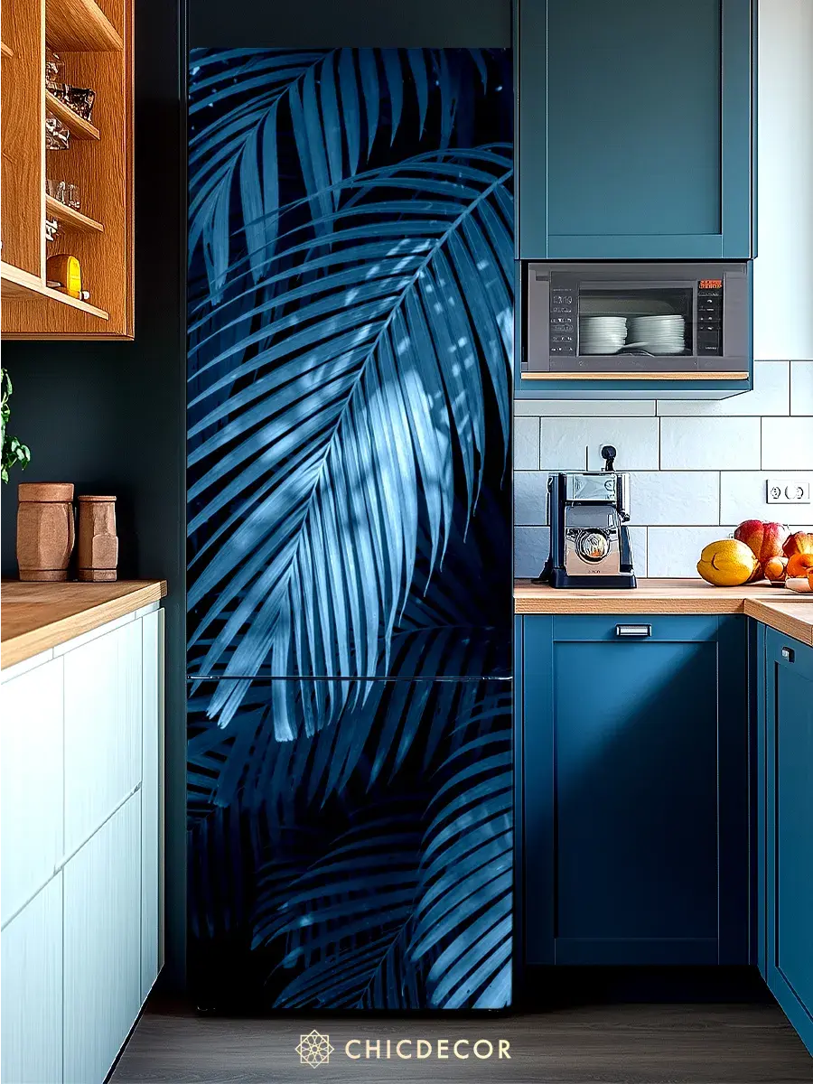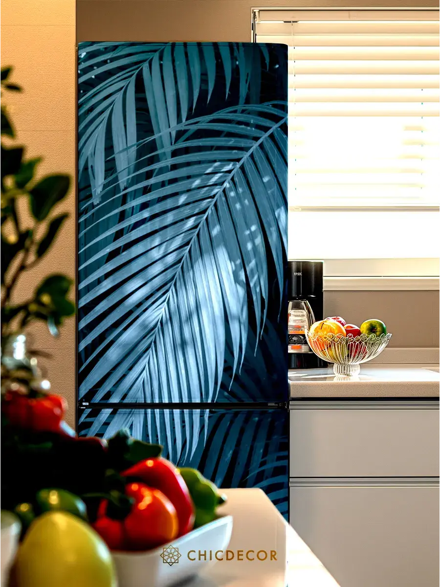 Наклейка интерьерная на холодильник Пальма голубая