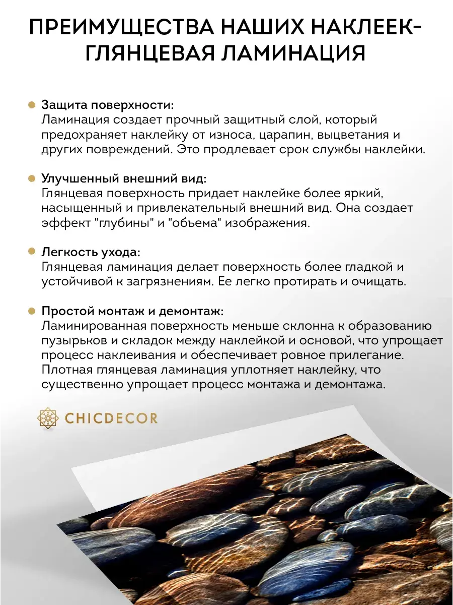 Преимущества наклеек CHIC DECOR - ГЛЯНЦЕВАЯ ЛАМИНАЦИЯ