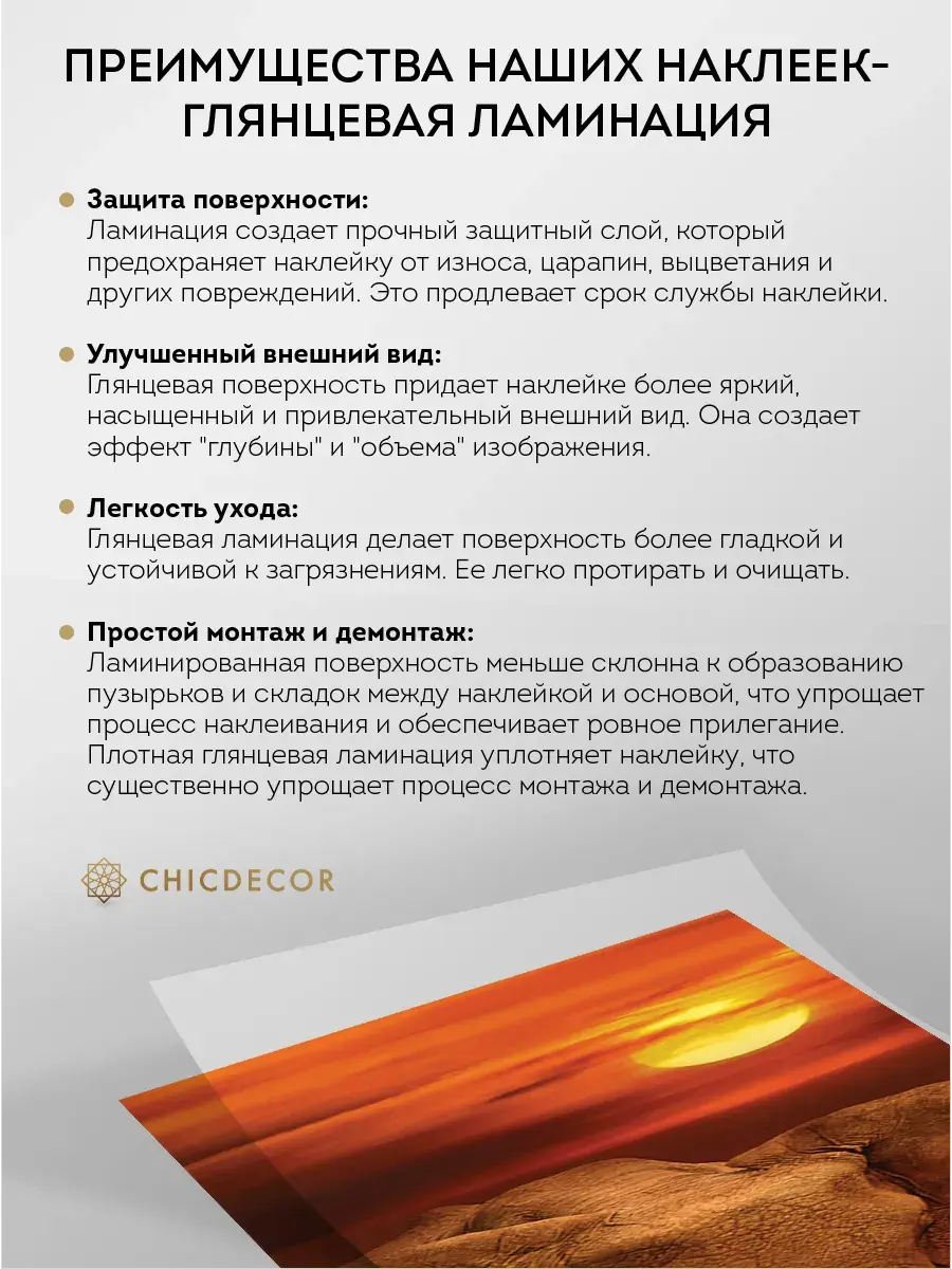 Преимущества наклеек CHIC DECOR - ГЛЯНЦЕВАЯ ЛАМИНАЦИЯ