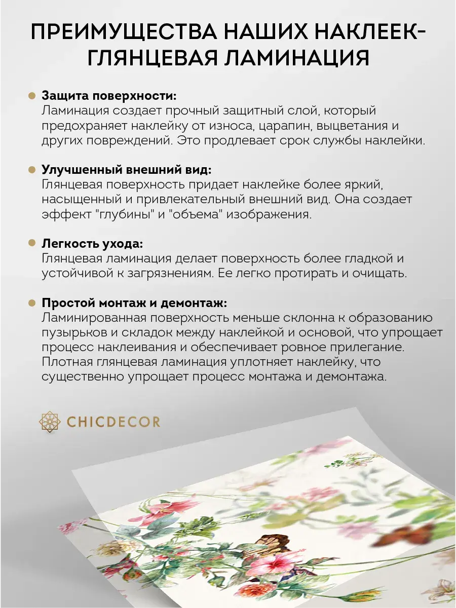 Преимущества наклеек CHIC DECOR - ГЛЯНЦЕВАЯ ЛАМИНАЦИЯ