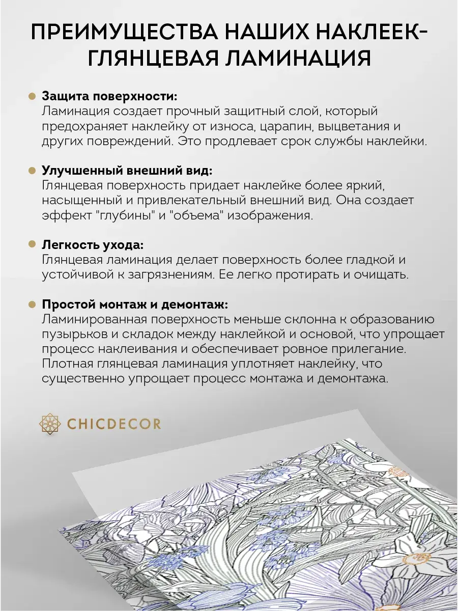 Преимущества наклеек CHIC DECOR - ГЛЯНЦЕВАЯ ЛАМИНАЦИЯ