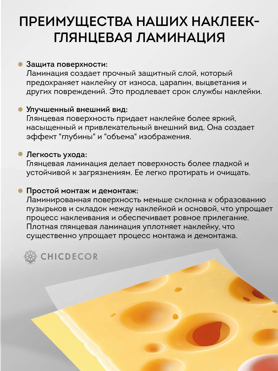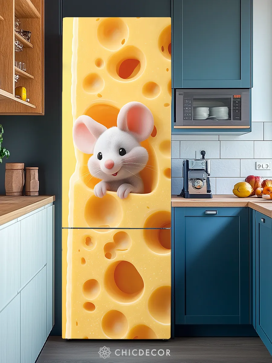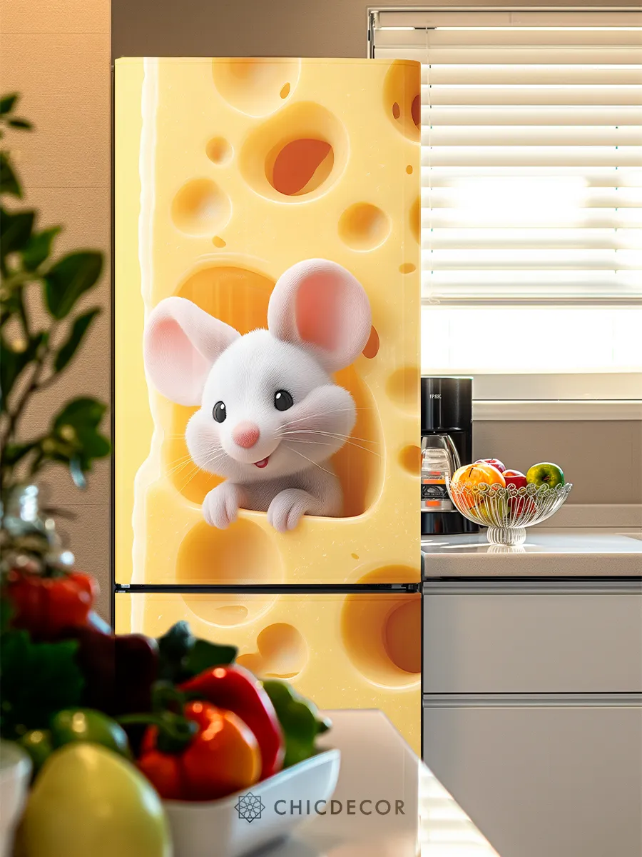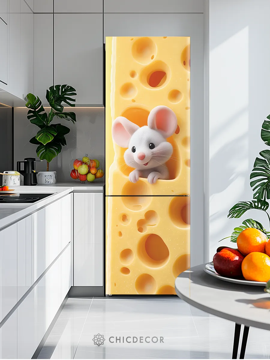 Высококачественный самоклеящийся материал обеспечивает надёжную фиксацию наклейки на холодильнике, не оставляя следов и не повреждая покрытие техники при удалении. Износостойкое покрытие защищает изображение от механических воздействий, влажности и выгорания цвета, что особенно важно для кухонных помещений.