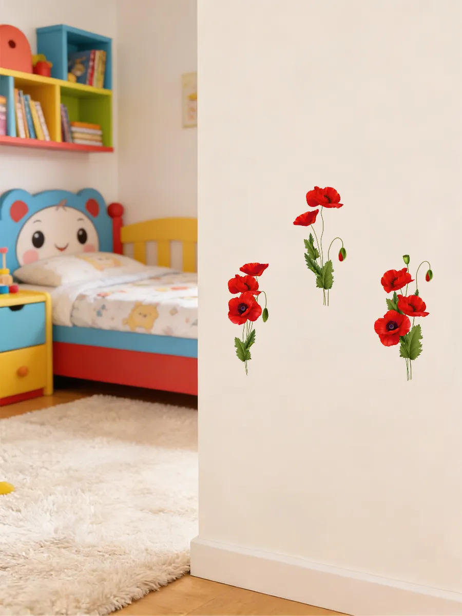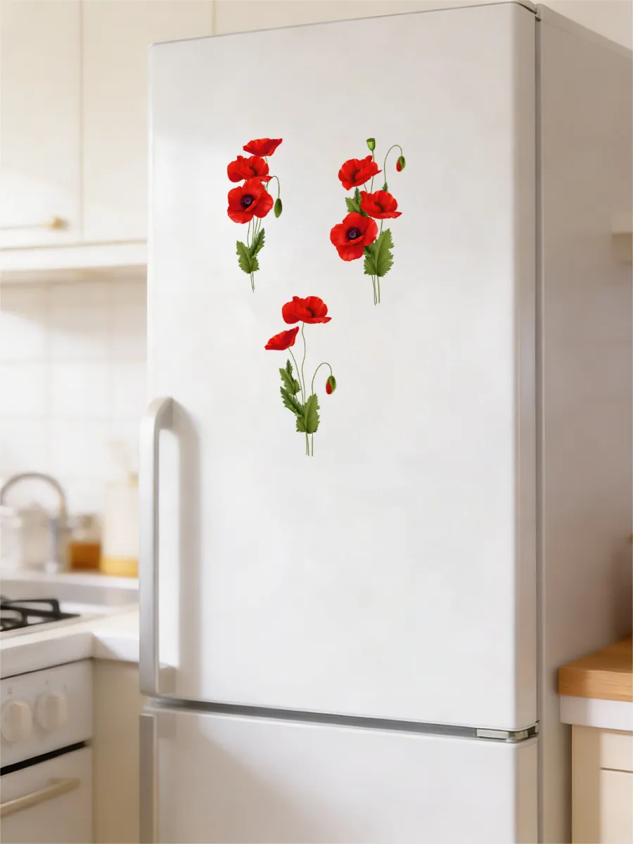 Прочные интерьерные наклейки выполнены из износостойких материалов, не выцветают со временем, устойчивы к воздействию влаги и солнечных лучей. Использование наклеек — это быстрый способ внести атмосферу уюта и легкости в любое помещение. Декор подходит как для главной стены в жилой комнате, так и для оформления рабочей поверхности кухни или дверцы холодильника, благодаря чему оформление интерьера не требует капитального ремонта и дополнительных затрат. Элегантные маки станут акцентными деталями в концепции украшения комнат и эффектно подчеркнут стиль дома.