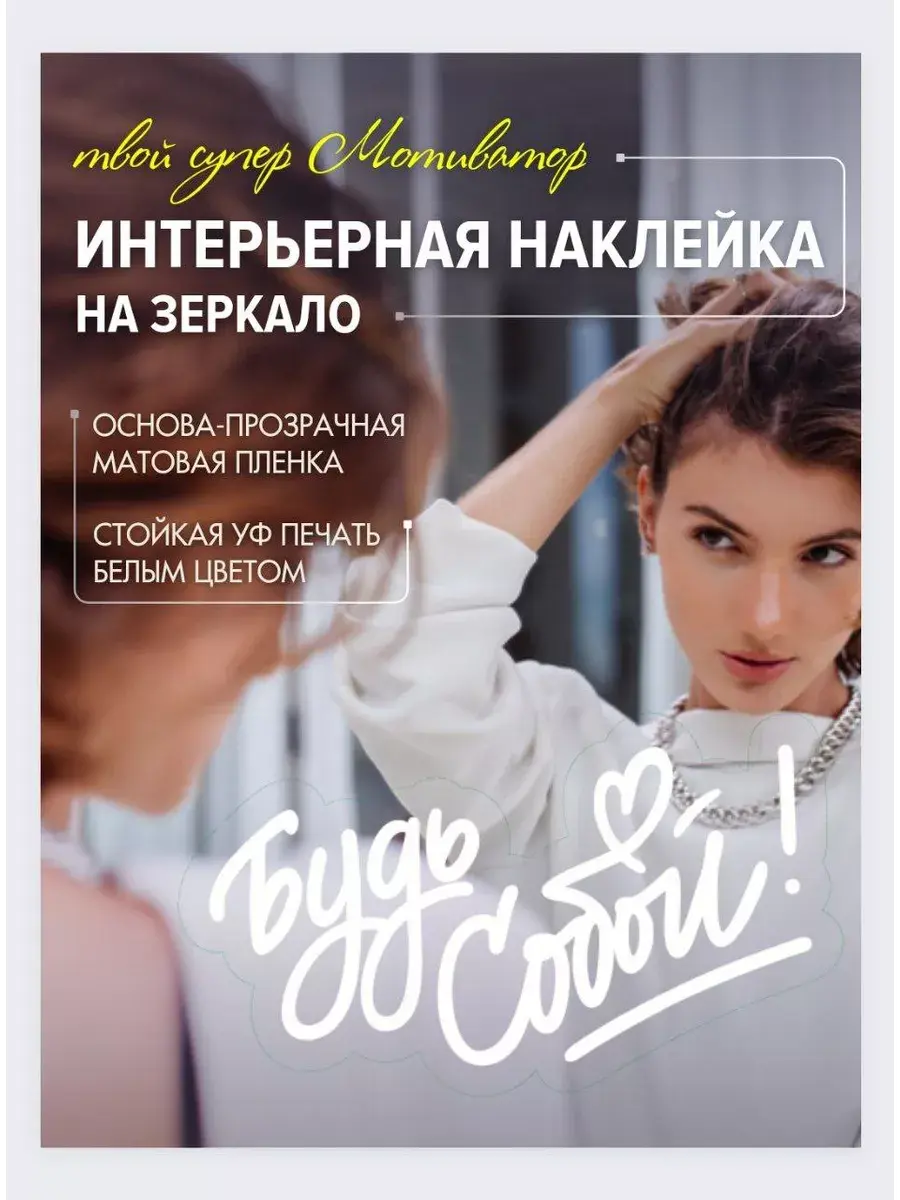 Наша наклейка идеально подходит для нанесения на зеркало. Она будет служить вдохновением и напоминанием о ваших целях и мотивациях каждый раз, когда вы взглянете в зеркало. Благодаря прозрачной и влагостойкой основе, наклейку легко нанести и она прослужит вам долгое время.